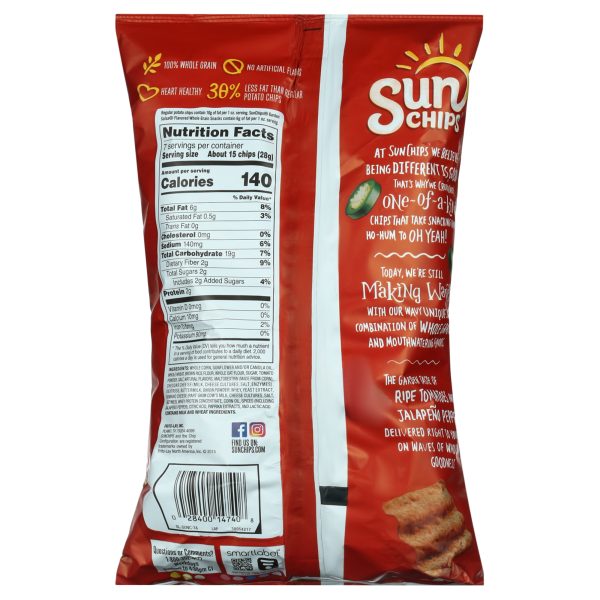 SUNCHIPS snacks are wavy, ripple-y squares full of whole-grain goodness (14-19g of whole grains per serving). Grab a bag of SUNCHIPS whole grain snacks in your favorite flavor, and tell your taste buds to meet you at the corner of delicious and wholesome.