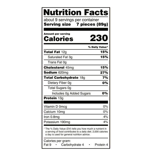 Impress family and friends alike at your next gathering with Great Value Buffalo Style Seasoned Boneless Fully Cooked Breaded Chicken Wyngz. These fully cooked chicken wings are a great tasting, quick, and convenient meal for the entire family. Breaded and covered in a spicy and savory buffalo style seasoning, these delicious chicken wings contain eleven grams of protein per serving. A perfect weekday meal with family or as an appetizer for a weekend gathering, these fully cooked frozen chicken wings are easy to prepare. Simply place in an oven, air fryer or microwave until hot. Includes one 24 ounce package of Great Value Buffalo Style Seasoned Boneless Fully Cooked Breaded Chicken Wyngz.