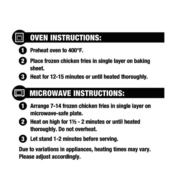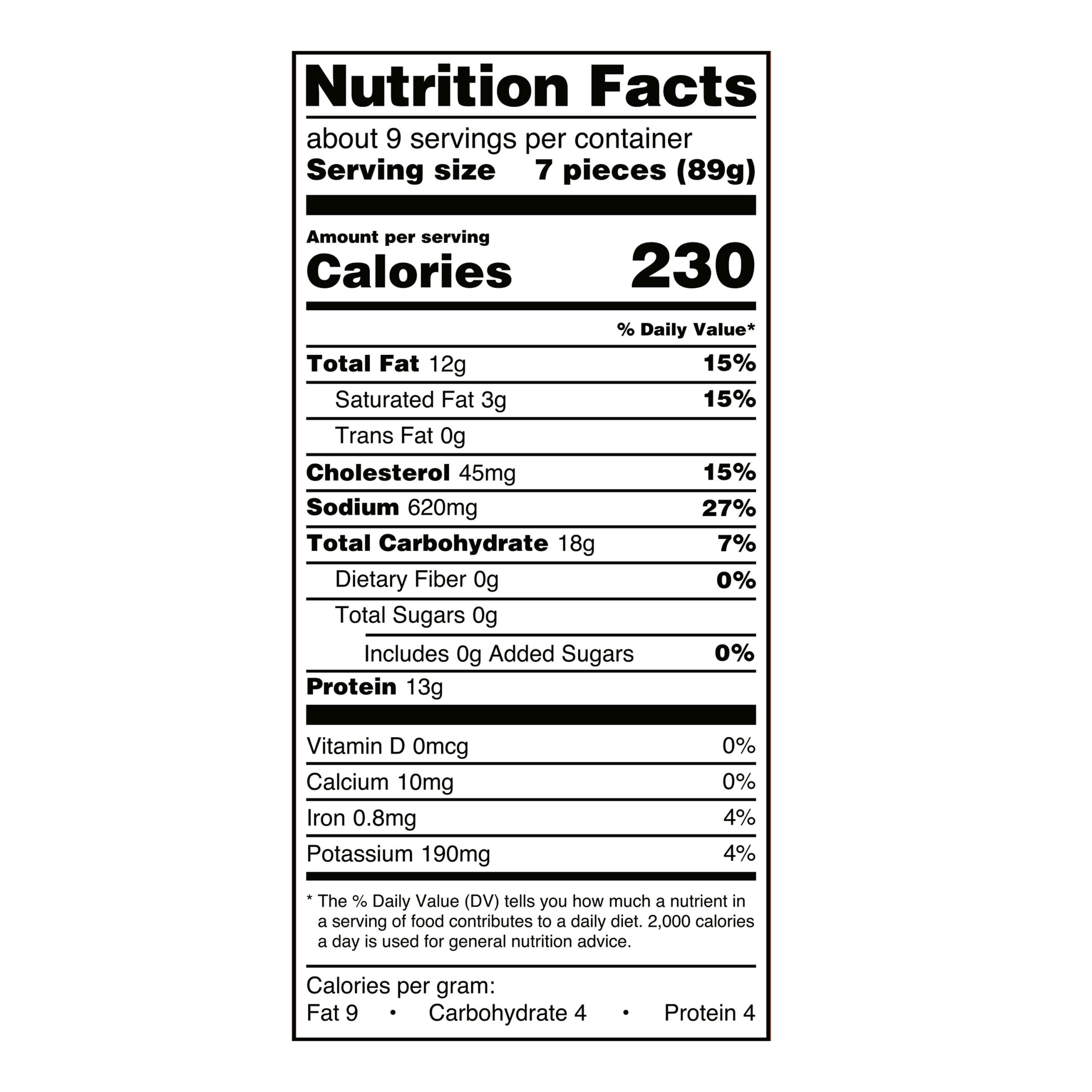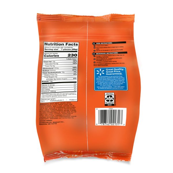 Enjoy a quick and delicious meal with Great Value Homestyle Chicken Fries. Made with boneless chicken breast seasoned and breaded to perfection, these chicken fries have 13 grams of protein per serving, and are packaged in 27.5 oz bags. Easy to prepare from frozen in the microwave or oven, these fully cooked chicken fries are something the kids can enjoy as a regular and nutritious after-school snack or a quick and easy dinner. For a complete meal, prepare and serve with your favorite dipping sauces and French fries. The entire family will enjoy these Great Value Homestyle Chicken Fries. Great Value products provide families with affordable, high-quality grocery and household consumable options. With our wide range of product categories spanning grocery and household consumables, we offer you a variety of products for your family’s needs. Our products are conveniently available online and in Walmart stores nationwide, allowing you to stock up and save money at the same time.