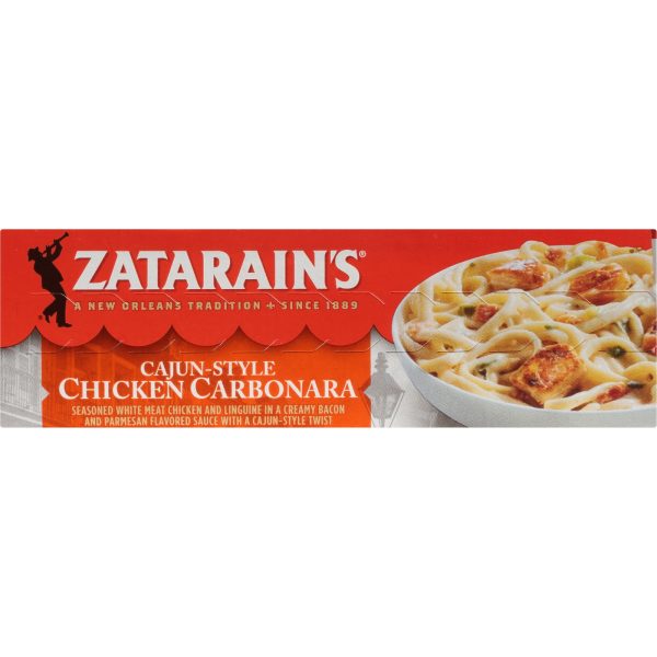 Zatarain’s® put a New Orleans twist on classic carbonara pasta with a frozen pasta meal goes from the freezer to the table in minutes. Enjoy seasoned white meat chicken and linguine in a creamy bacon and Parmesan sauce with a Cajun-style twist for dinner tonight! A New Orleans tradition since 1889, Zatarain’s brings you a frozen dinner that’s perfect for busy weeknights. Simply microwave the pasta bowl for 5 minutes – no cleanup needed. Cajun Chicken Carbonara, featuring blackened seasoned chicken and linguine in a creamy bacon and Parmesan sauce that’s flavored with Cajun spices like garlic, paprika and red pepper, is special enough for family dinner or an easy date night meal. This spicy chicken pasta is also a great frozen lunch option. This Zatarain’s® Frozen Cajun-Style Chicken Carbonara is in a Cardboard box that is 10.5 ounces. Store this shelf-stable item at a freezing temperature.