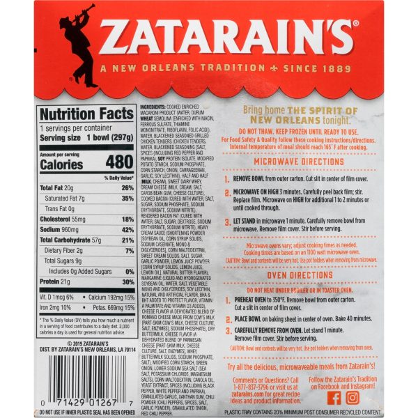 Zatarain’s Frozen Meal – Cajun Chicken Carbonara, 10.5 oz Packaged Meals