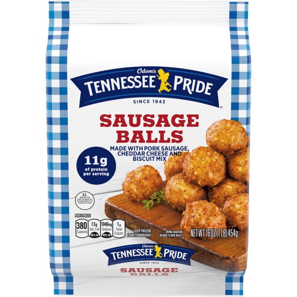 Odom’s Tennessee Pride Sausage Balls make good mornings even better. These premium frozen sausage balls with cheddar cheese and biscuit mix are ready to bake and are made with high-quality ingredients and the secret family recipe of herbs and spices. Instead of your typical breakfast sausage, try Odom?s Tennessee Pride Sausage Balls for a great frozen breakfast food or snack. Serve the sausage balls with eggs and toast for an easy breakfast, or just enjoy the savory sausage balls by themselves. Bake the frozen sausage balls thoroughly in an oven. Keep the 24 count bag of sausage balls frozen to keep fresh until ready to cook. Rise and shine to real country flavor with Odom?s Tennessee Pride.