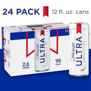 Michelob ULTRA is a superior light beer that is made for those living active and balanced lifestyles. This light lager is brewed with Herkules hops and wholesome grains, creating exceptional taste and a crisp, refreshing finish. Not only is this American beer made with no artificial colors or flavors, but it has just 95 calories and 2.6 grams of carbs per serving; by drinking Michelob ULTRA, you can enjoy a cold beer without compromising your active lifestyle. Enjoy these slim cans of beer during dinner, social gatherings or get-togethers that call for refreshing drinks. The handle on this 24 pack of beer cans makes it easy to transport with you anywhere.