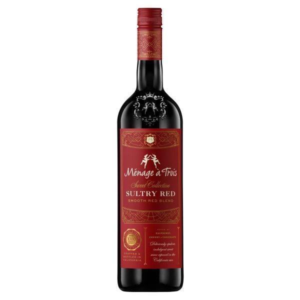 u0026bull;Brimming with lush berry aromas and layers of rich raspberry and dark cherry flavors wrapped in velvety chocolateu003cbru003eu0026bull;Silky and smooth with delightful bursts of carbonation, Sultry Red reminds you it’s always good to give in to temptationu003cbru003eu0026bull;Ménage à Trois has received over 1,000 awards u0026 medalsu003cbru003eu0026bull;When you’re craving a sweet encounter, Ménage à Trois Sultry Red Wine quenches your desire!u003cbru003eu0026bull;Crafted from grapes ripened in the California sunu003cbru003eu0026bull;Winemakers cap and drain the grapes to increase varietal intensity then enhance the blend with natural strawberry, rose and chocolate flavors. And if that wasn’t enough to drive you mad with desire, they’ve also elevated the wine with gentle carbonation for a truly unique experienceu003cbru003eu0026bull;One 750mL bottle of Ménage à Trois Sultry Red Blend contains, 9.65% ABV