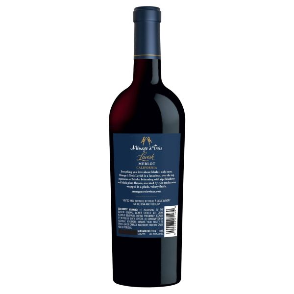 u0026bull;Dry wine with ripe flavors of blueberry and juicy black plum flavors with dark cocoa and vanilla notes and a chocolaty finishu003cbru003eu0026bull;California wine features a blueberry cordial aroma with a soft, round mouthfeelu003cbru003eu0026bull;The 2018 vintage received 90 Points from the 2020 Jerry Mead New World Wine Competitionu003cbru003eu0026bull;Dry red wine that makes the perfect pairing with pork, hamburgers or mushroom dishesu003cbru003eu0026bull;Bottled wine made using grapes sourced from premier California vineyards on the Central Coast and North Coastu003cbru003eu0026bull;Merlot wine fermented on French and American oak to round out the flavors and mouthfeelu003cbru003eu0026bull;One 750mL wine bottle of Menage a Trois Lavish Merlot Red Wine, 13.6% ABV