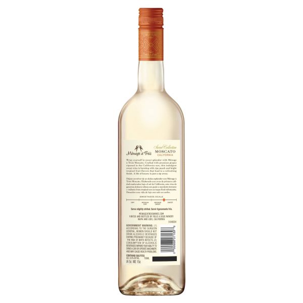 u0026bull;Decadent flavors of ripe peaches and bright pineapple drenched in honey and orange blossomsu003cbru003eu0026bull;Delicate carbonation and a lively finish lift the richness of the wine with aromas of orange zest, honeysuckle and crisp acidityu003cbru003eu0026bull;This sweet wine received 90 Points from the Tasting Panel in April/May 2021u003cbru003eu0026bull;Serve this California wine with cheese and vegetable plattersu003cbru003eu0026bull;Made with grapes grown in the warm California sunu003cbru003eu0026bull;Cold fermented at 50 degrees Fahrenheit to maintain the rich, sweet flavors and aromasu003cbru003eu0026bull;One 750mL bottle of Menage a Trois Sweet Collection Moscato Sweet White Wine, 9.5% ABV