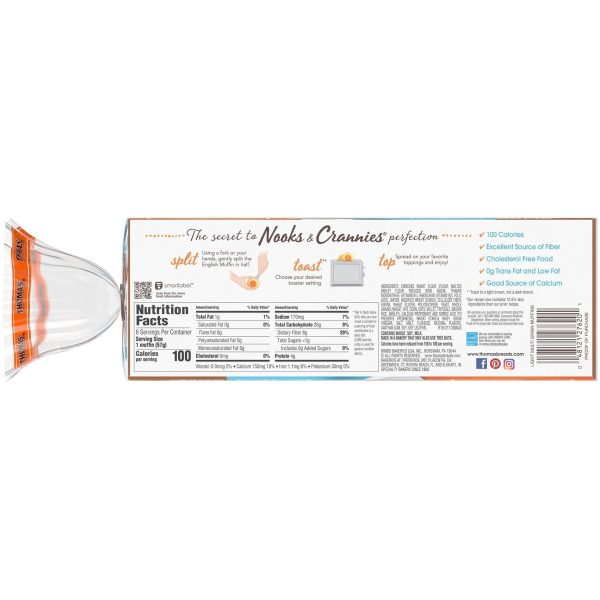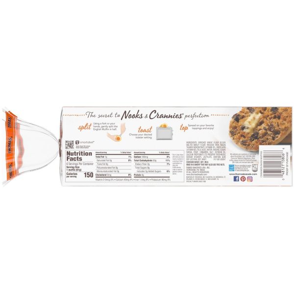 u0026bull;TRADITIONAL FAVORITE: Crunchy on the outside, and soft and chewy on the inside when toasted. Our classic Original Nooks u0026 Crannies English Muffins are just as delicious today as they were when they were introduced 140 years ago.u003cbru003eu0026bull;NUTRITIONAL INFO: Our Original Nooks u0026 Crannies English Muffins are baked with no high fructose corn syrup. They contain wheat, soy, and milk and are made in a bakery that may also use tree nuts.u003cbru003eu0026bull;TREMENDOUS TEXTURE: When you hand or fork-split your Thomas’ English Muffin, its Nooks u0026 Crannies texture toasts up crispy on the edges and soft in the middle — perfect for your favorite toppings like rich butter, smooth cream cheese, or fresh avocado slices.u003cbru003eu0026bull;BREAKFAST AND BEYOND: Thomas’ English Muffins are so good you’ll want to eat them for breakfast, lunch, snack, and dinner. Their versatility is a bonus to their delicious goodness; try breakfast sandwiches, mini pizzas, or the ultimate burger.u003cbru003eu0026bull;RECIPE FOR GREATNESS: Since 1880, Thomas’ has used quality ingredients and stayed true to our baking methods. We’re always looking for ways to improve our products and introduce new and exciting breakfast breads.