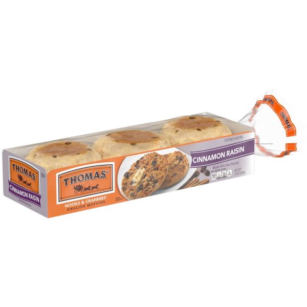 u0026bull;TRADITIONAL FAVORITE: Crunchy on the outside, and soft and chewy on the inside when toasted, our Cinnamon Raisin English Muffins offer plenty of raisins and a sprinkle of cinnamon to make your breakfast or snack even sweeter.u003cbru003eu0026bull;NUTRITIONAL INFO: Our Cinnamon Raisin English Muffins are made with real raisins, Indonesian cinnamon and without high fructose corn syrup. They contain wheat, soy and milk and are made in a bakery that may also use tree nuts.u003cbru003eu0026bull;TREMENDOUS TEXTURE: When you gently hand or fork-split your Thomas’ English Muffin, its texture toasts up crispy on the edges and soft in the middle — perfect for your favorite toppings like butter, cream cheese, or even avocados.u003cbru003eu0026bull;BREAKFAST AND BEYOND: Thomas’ English Muffins are so good you’ll want to eat them for breakfast, lunch, snack, and dinner. Their versatility is a bonus to their delicious goodness.u003cbru003eu0026bull;RECIPE FOR GREATNESS: Since 1880, Thomas’ has used quality ingredients and stayed true to our baking methods. We’re always looking for ways to improve our products and introduce new and exciting breakfast breads.