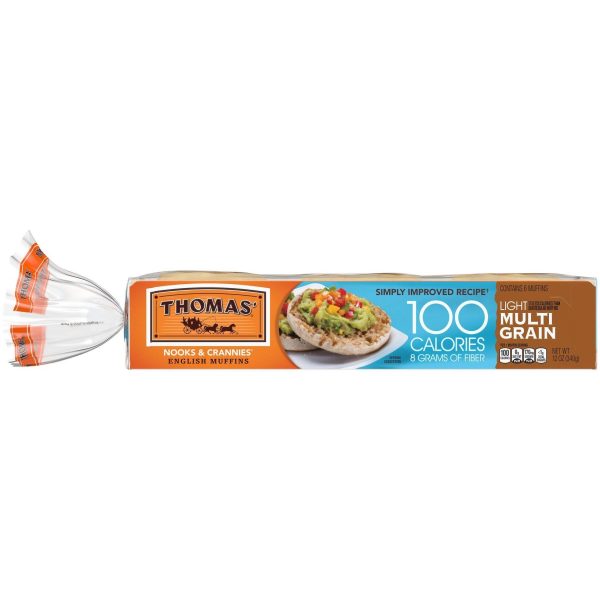u0026bull;TRADITIONAL FAVORITE: Crunchy on the outside, and soft and chewy on the inside when toasted, our Light Multi-Grain English Muffins help you keep your diet in check and allow you to go all out on toppings.u003cbru003eu0026bull;NUTRITIONAL INFO: Our Light Multi-Grain English Muffins are an excellent source of fiber with 8g in each muffin, are baked without high fructose corn syrup, and are 100 calories per serving. They contain wheat, soy and milk and are made in a bakery that may also use tree nuts.u003cbru003eu0026bull;TREMENDOUS TEXTURE: When you gently hand or fork-split your Thomas’ English Muffin, its texture toasts up crispy on the edges and soft in the middle — perfect for your favorite toppings like rich butter, smooth cream cheese, or fresh avocado slices.u003cbru003eu0026bull;BREAKFAST AND BEYOND: Thomas’ English Muffins are so good you’ll want to eat them for breakfast, lunch, snack, and dinner. Their versatility is a bonus to their delicious goodness; try breakfast sandwiches, mini pizzas, or the ultimate burger.u003cbru003eu0026bull;RECIPE FOR GREATNESS: Since 1880, Thomas’ has used quality ingredients and stayed true to our baking methods. We’re always looking for ways to improve our products and introduce new and exciting breakfast breads.