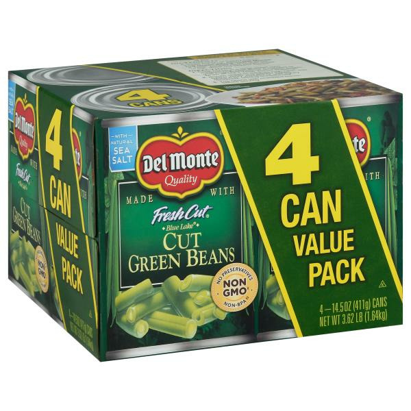 Del Monte Green Beans, Cut, No Salt Added, Value Pack, 4 Pack
