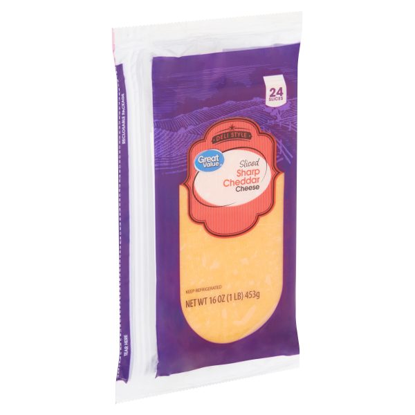 Great Value Deli Style Sliced Sharp Cheddar Cheese, 24 count, 16 oz