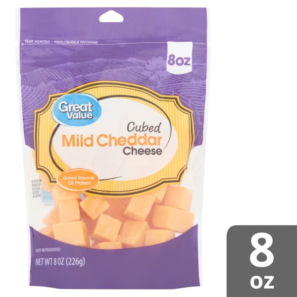 Great Value Cubed Mild Cheddar Cheese, 8 oz