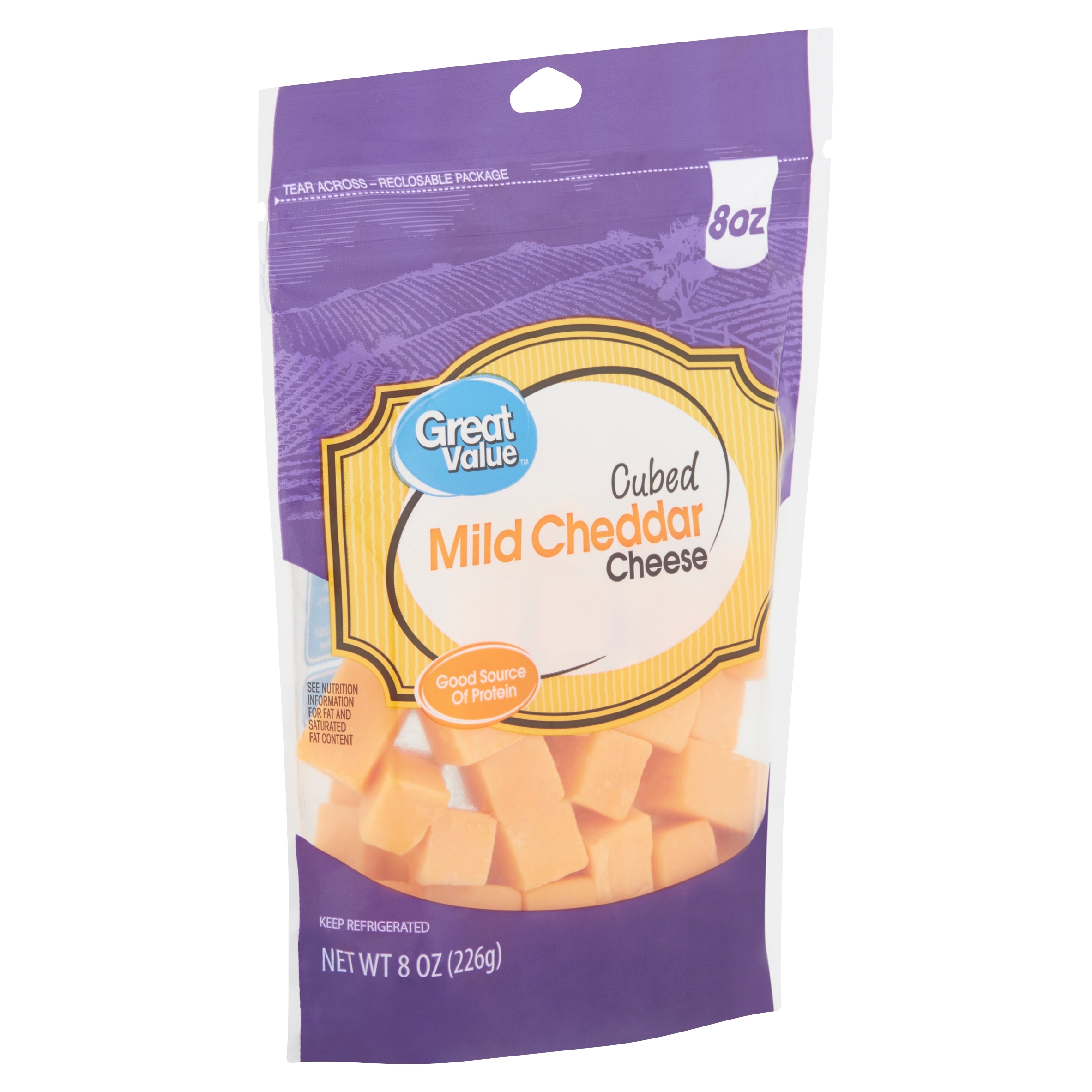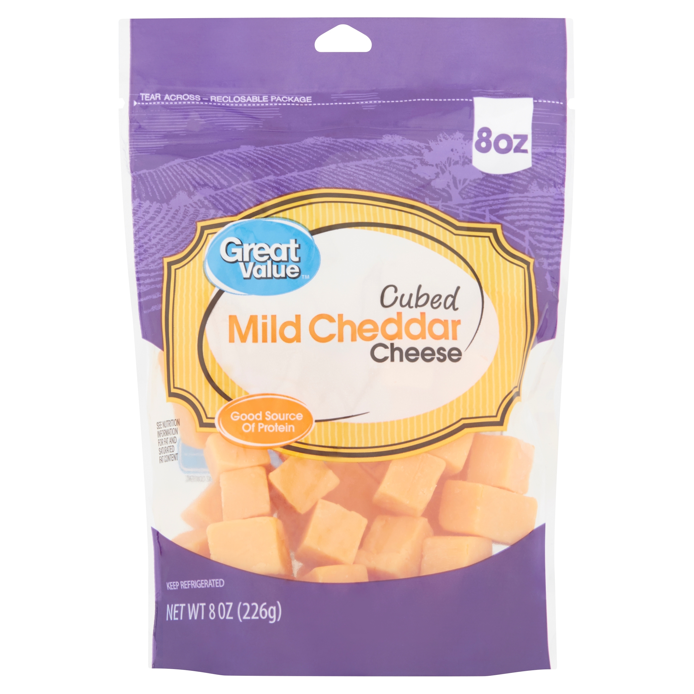 Great Value Cubed Mild Cheddar Cheese, 8 oz