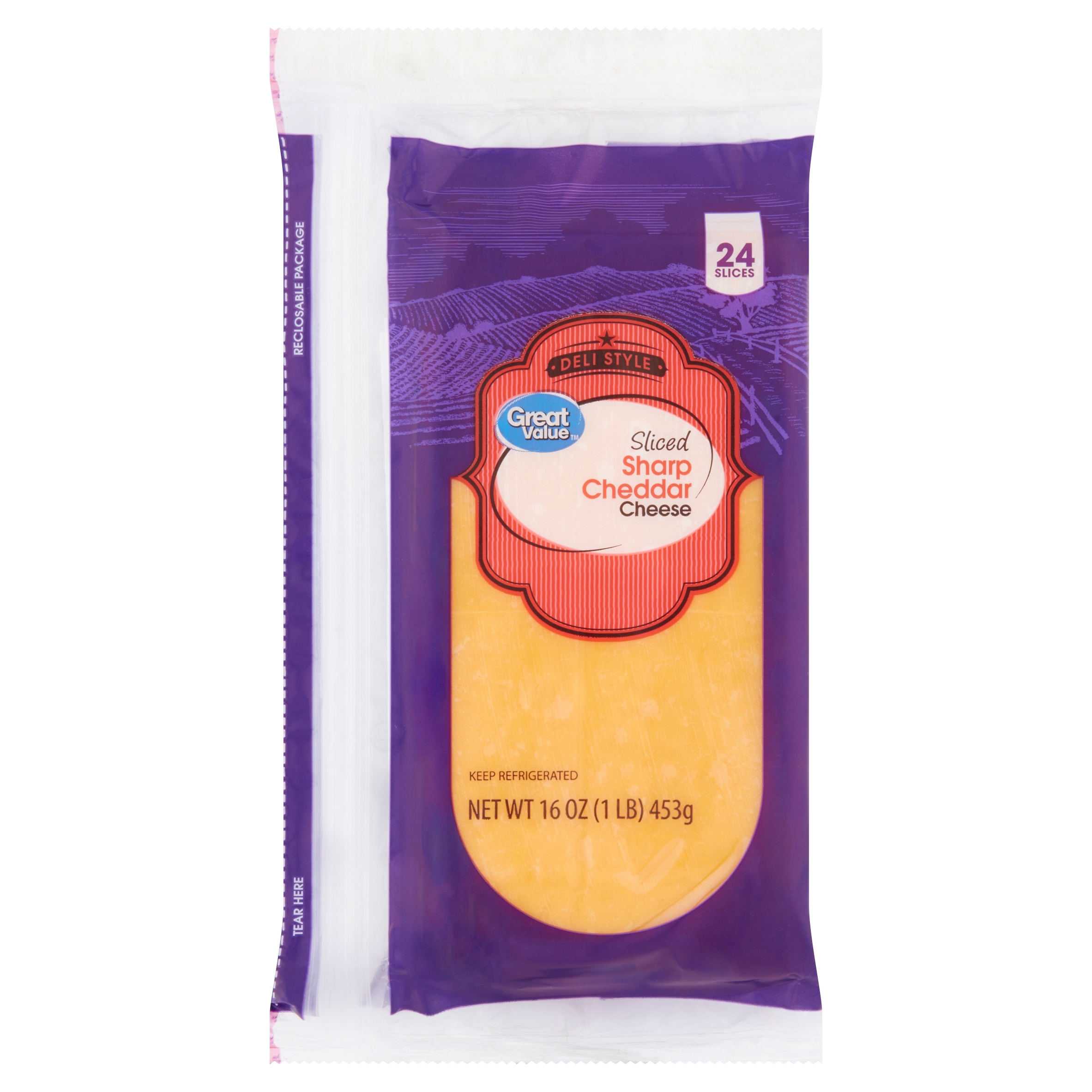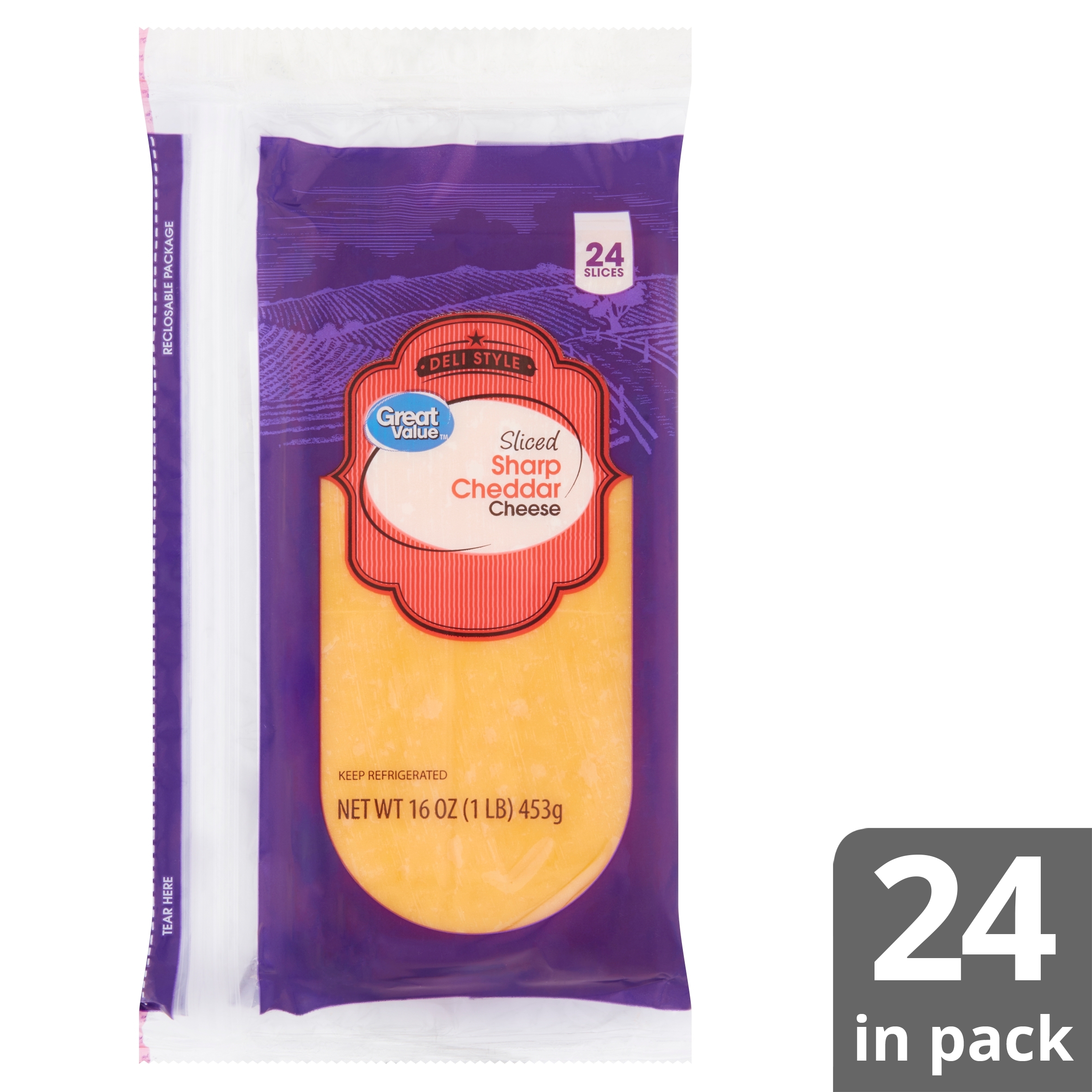 Great Value Deli Style Sliced Sharp Cheddar Cheese, 24 count, 16 oz