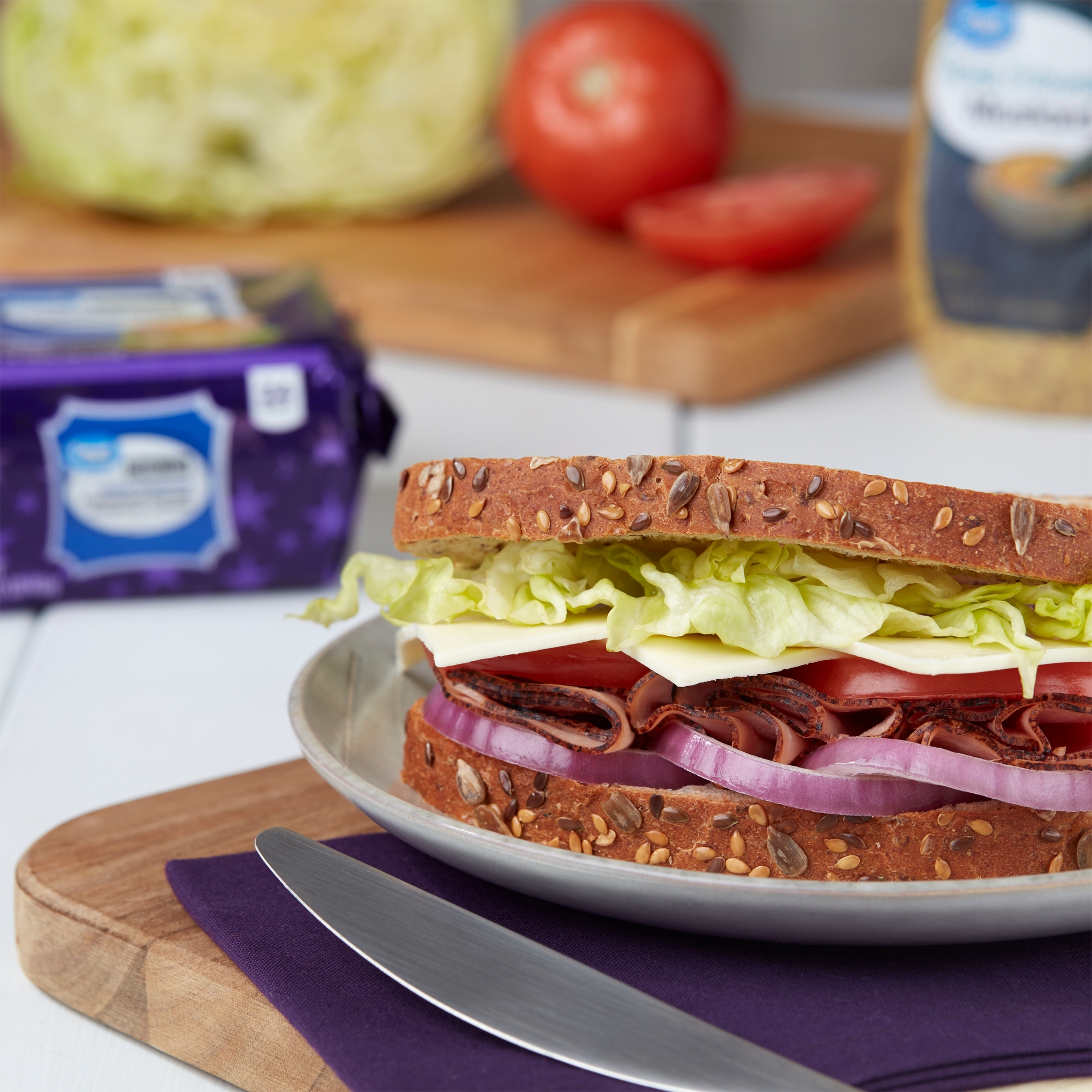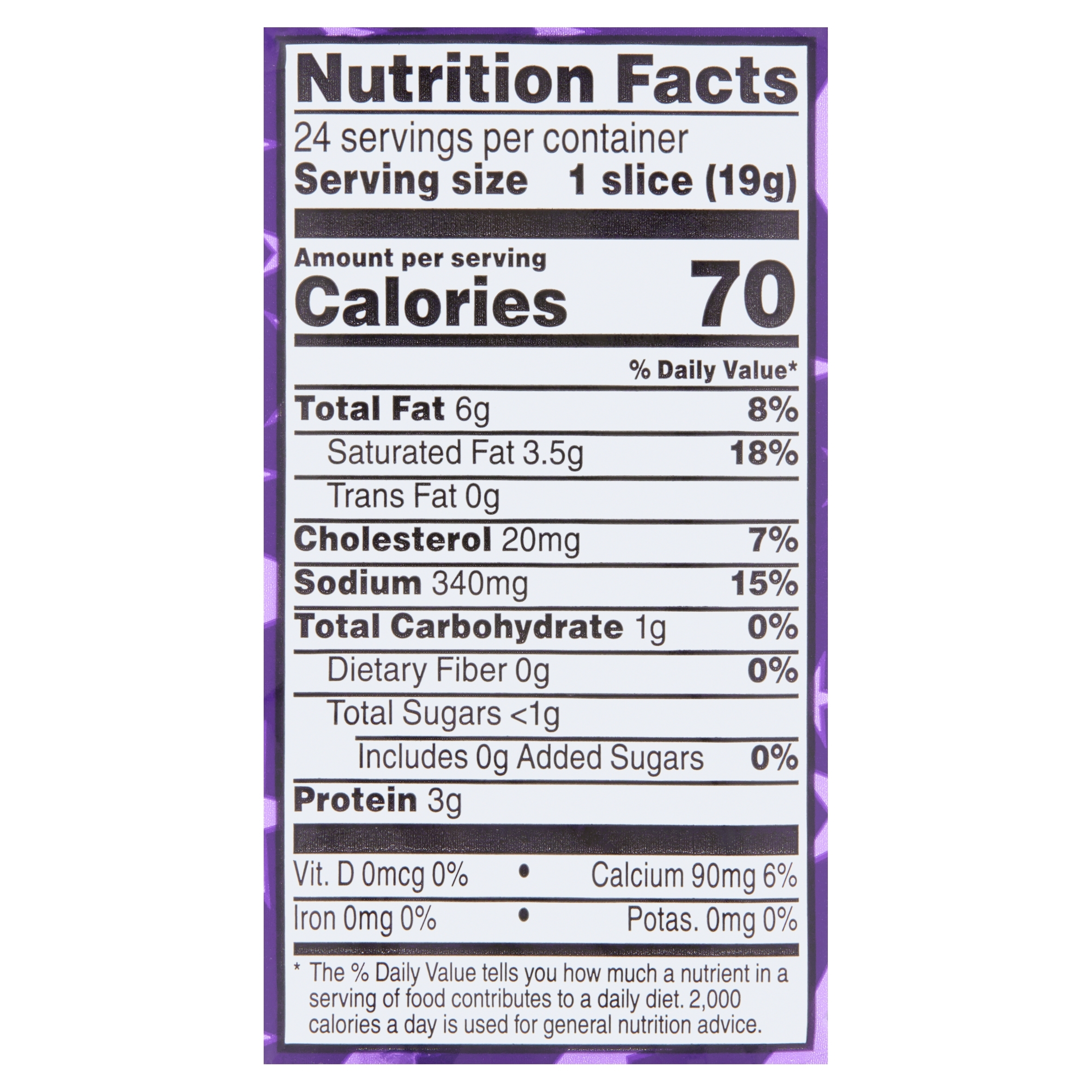 Great Value Deli Style Sliced Sharp Cheddar Cheese is for dairy lovers who enjoy intense, creamy, rich flavor. This 16-ounce package comes with 24 deli-style slices of sharp Cheddar cheese, which are great for melty grilled cheese sandwiches, juicy cheeseburgers, or traditional cheese-and-cracker appetizers. Try melting these slices over veggies or nachos, bake inside lasagna, add to hot hoagies, or enjoy a few yummy slices as a snack with some juicy red or green grapes. Add bold flavor to your next epic meal with Great Value Deli Style Sliced Sharp Cheddar Cheese.