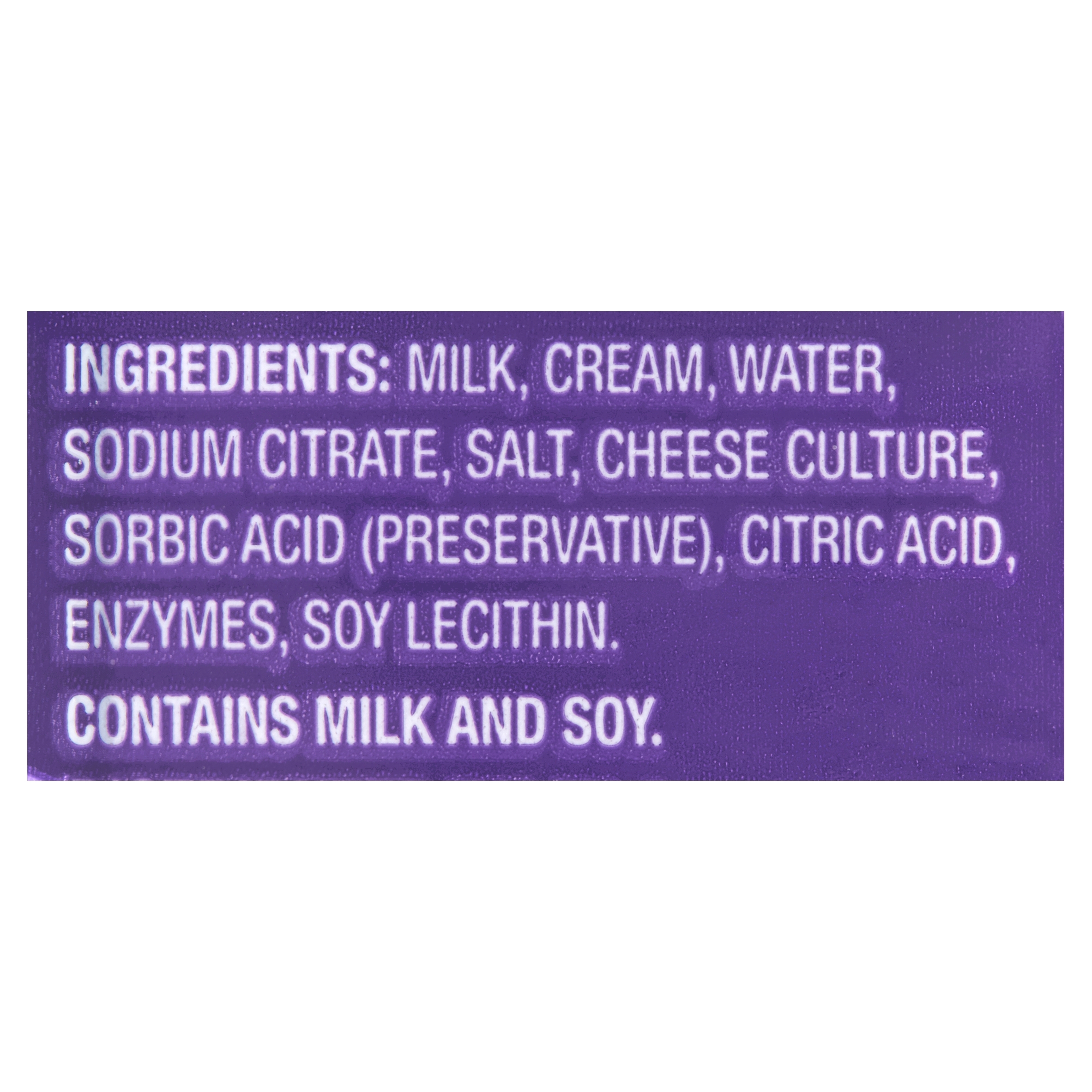 This product contains 6g total fat. Regular cheddar cheese contains 9g total fat per serving.