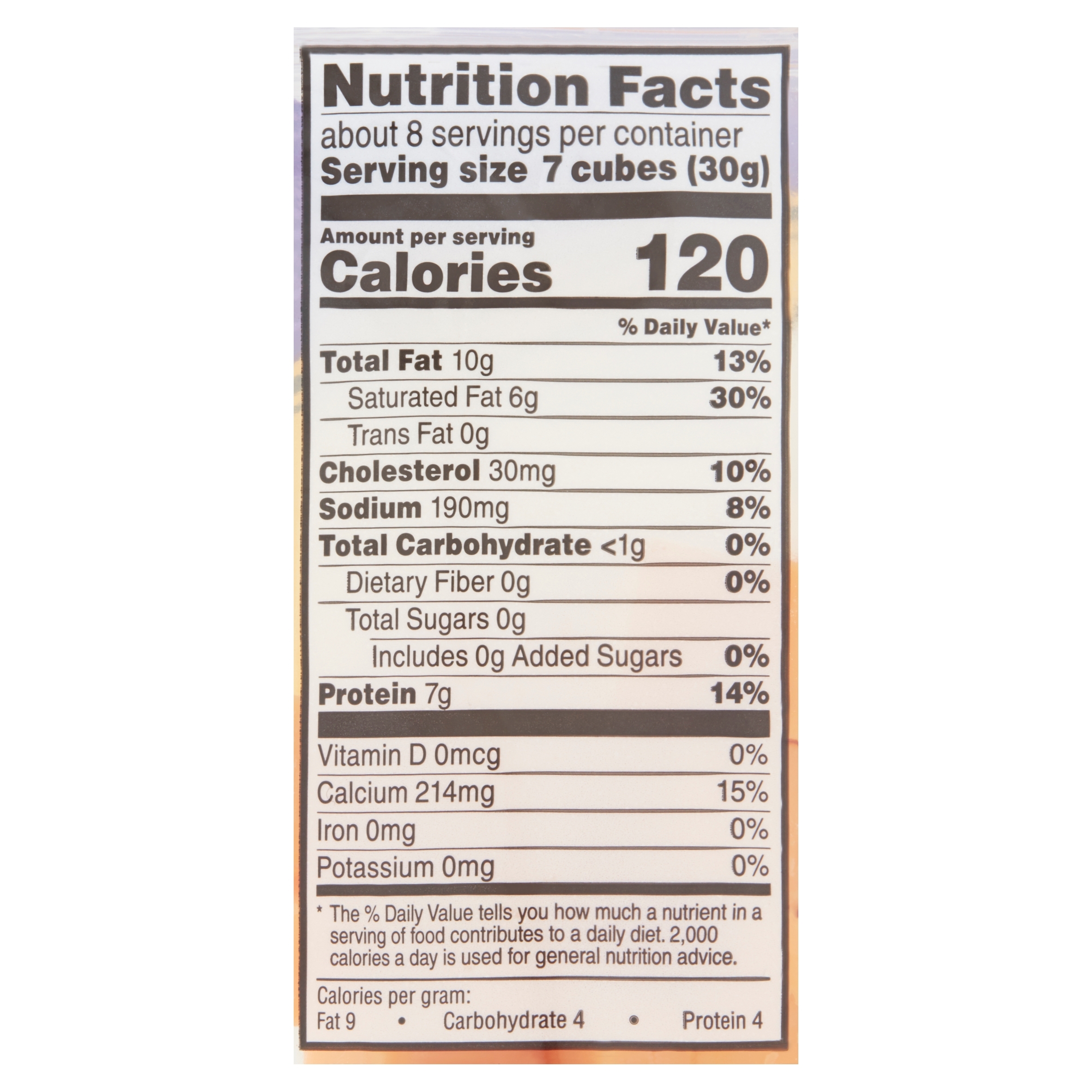 Create tasty meals and snacks with Great Value Mild Cheddar Cheese, 8 oz. Enjoy creamy, rich flavor in a form that’s fun to eat. Smooth, semi-soft and sumptuous, these cheerful orange mini blocks look good on cheese plates and are an ideal size for snacks. The cheddar cheese cubes also melt nicely atop hamburgers and blend beautifully into casseroles, sauces and mac and cheese. Include them as a pleasant surprise in lunchboxes or pair them with crackers at a party. Great Value cheddar cheese is also versatile and makes tasty snacks for your next gathering. It is a source of protein and is high in calcium.