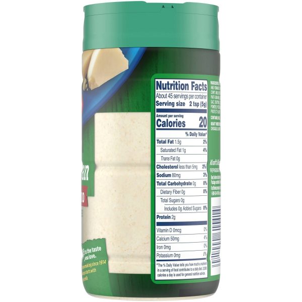 u0026bull;One 8 oz. shaker bottle of Kraft Grated Parmesan Cheeseu003cbru003eu0026bull;Kraft Grated Parmesan Cheese is made with premium quality milku003cbru003eu0026bull;Delivers sharp, tangy flavor to your favorite recipesu003cbru003eu0026bull;Grated for convenienceu003cbru003eu0026bull;Versatile Italian style Parmesan cheese enhances your pastas, pizzas, seafood, salads and moreu003cbru003eu0026bull;Shaker bottle is easy to use and storeu003cbru003eu0026bull;Refrigerate after opening