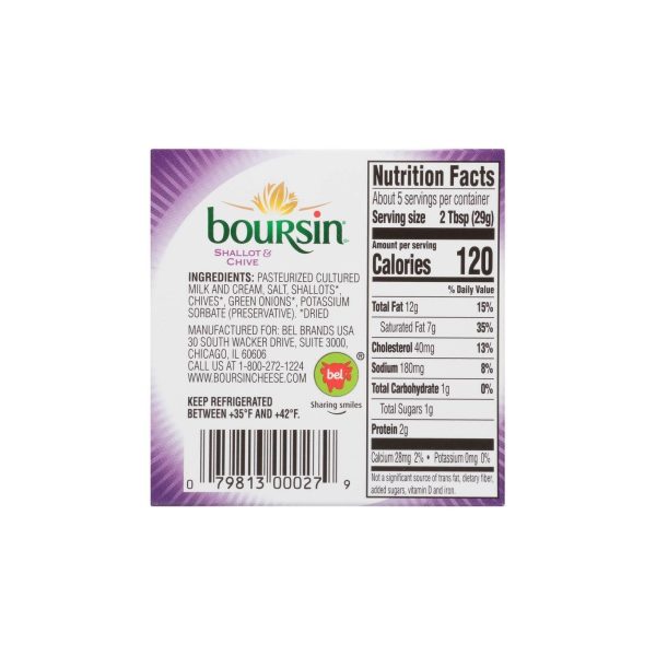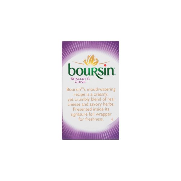 u0026bull;Boursin® cheese is a creamy, yet crumbly soft gourmet cheeseu003cbru003eu0026bull;Wrapped in signature foil; perfect for appetizers, hors d’oeuvres, and cheese boardsu003cbru003eu0026bull;Tasty blend of savory shallot and delectable chive herbsu003cbru003eu0026bull;Serve with crackers, fresh vegetables, or baguettes at your next partyu003cbru003eu0026bull;Gluten free and nut freeu003cbru003eu0026bull;Certified Kosher Dairy (OU) u0026 Vegetarian