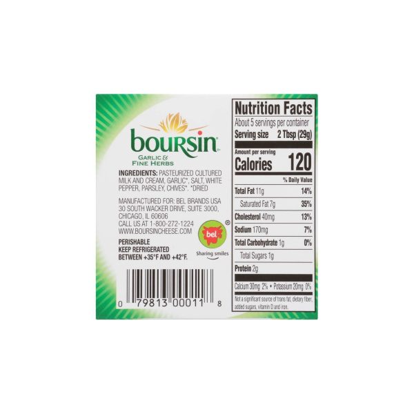u0026bull;Boursin® cheese is a creamy, yet crumbly soft gourmet cheeseu003cbru003eu0026bull;Wrapped in signature foil; perfect for appetizers, hors d’oeuvres, and cheese boardsu003cbru003eu0026bull;Flavorful blend of garlic and fine herbsu003cbru003eu0026bull;Serve with crackers, fresh vegetables, or baguettes at your next partyu003cbru003eu0026bull;Gluten free and nut freeu003cbru003eu0026bull;Certified Kosher Dairy (OU) u0026 Vegetarian