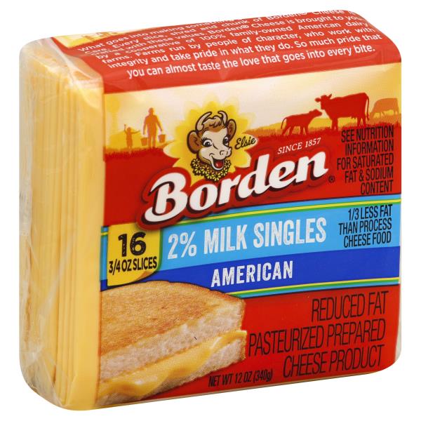 Borden Cheese Product, Pasteurized Prepared, American, Reduced Fat, 2% Milk Singles
