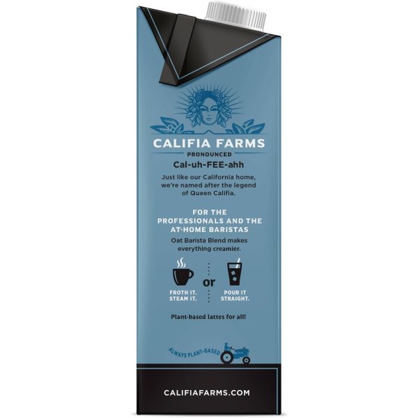 u0026bull;FROTH + STEAM PERFECT LATTES: With Oat Barista Blend you can froth and steam perfect dairy-free lattes at home. Naturally creamy and subtly sweet, Oat Barista Blend is made for lattes.u003cbru003eu0026bull;SIMPLE PLANT-BASED INGREDIENTS: Califia Farms Barista Blends are made with plant-based, dairy-free ingredients that are Non-GMO Certified, Glyphosate free, Kosher, vegan, and free from carrageenan.u003cbru003eu0026bull;BLENDS SMOOTHLY INTO COFFEE: This plant-based non-dairy Barista Blend blends beautifully into both hot and iced coffee, for a smooth and creamy cup of coffee every time.u003cbru003eu0026bull;BARISTA’S CHOICE DAIRY-FREE MILK: Califia Farms Barista Blends are favored by professional baristas across the country for their ability to froth, steam, and form latte art.
