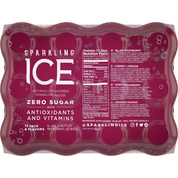 Sparkling Ice Variety Pack-Black Raspberry/Orange Mango/Kiwi Strawberry/Cherry Limeade – 12pk/17 fl oz Bottles