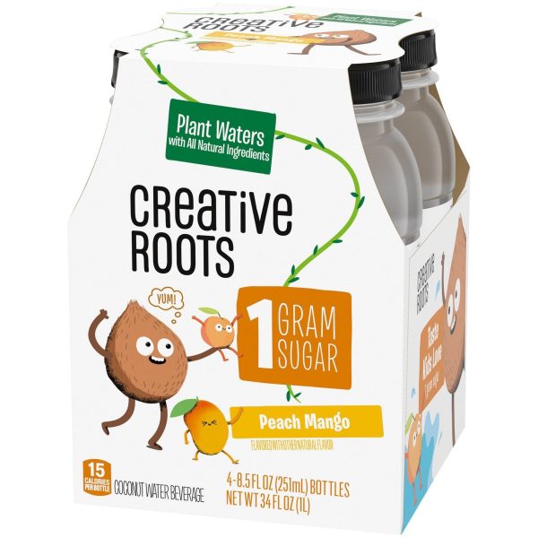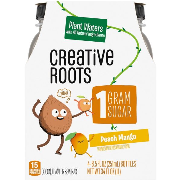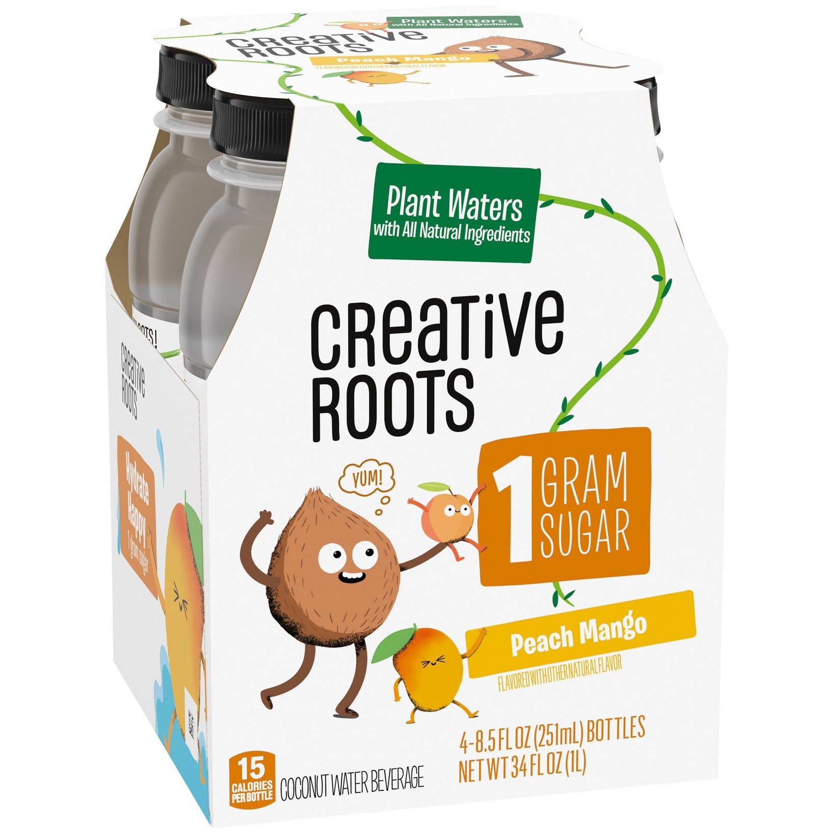 u0026bull;One 4 ct. package of Creative Roots Peach Mango Flavored Coconut Water Kids Beverage with other natural flavorsu003cbru003eu0026bull;Made with all natural ingredients and 1 g of sugar per serving. The sugar in Creative Roots is naturally occurring sugar from coconut wateru003cbru003eu0026bull;Plant-powered hydration kids needu003cbru003eu0026bull;Flavored coconut water taste kids loveu003cbru003eu0026bull;Each bottle of kids coconut water fits into school lunch bags easilyu003cbru003eu0026bull;Perfect for your child’s lunch or on the go with a snacku003cbru003eu0026bull;This kids coconut water contains 15 calories per serving