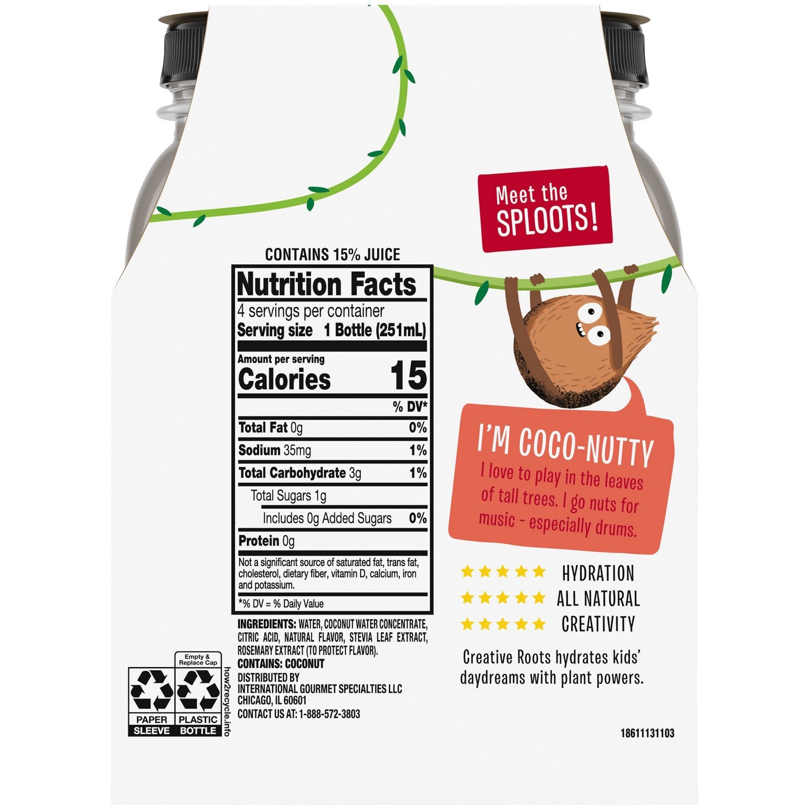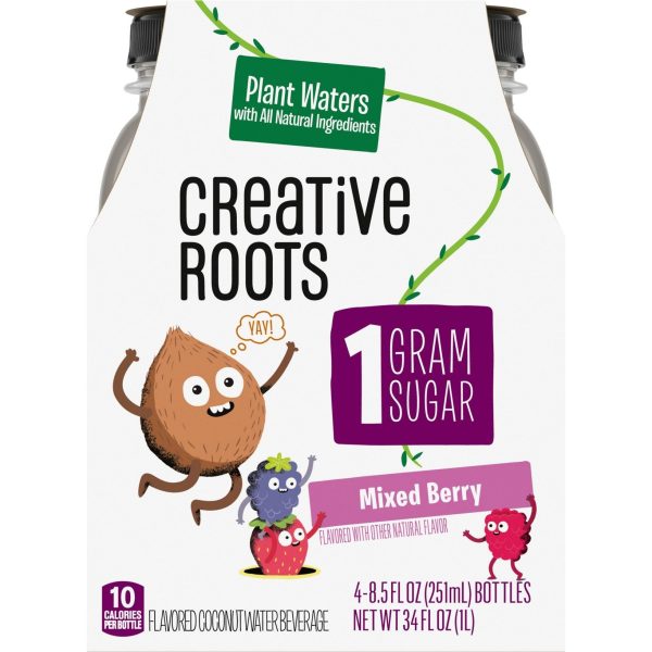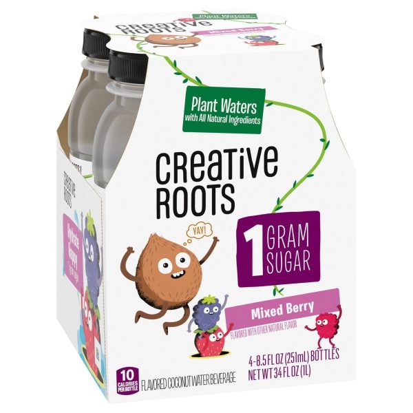 u0026bull;One 4 ct. package of Creative Roots Mixed Berry Flavored Coconut Water Kids Beverage with other natural flavorsu003cbru003eu0026bull;Made with all natural ingredients and 1 g of sugar per serving. The sugar in Creative Roots is naturally occurring sugar from coconut wateru003cbru003eu0026bull;Plant-powered hydration kids needu003cbru003eu0026bull;Flavored coconut water taste kids loveu003cbru003eu0026bull;Each bottle of kids coconut water beverage fits into school lunch bags easilyu003cbru003eu0026bull;Perfect for your child’s lunch or on the go with a snacku003cbru003eu0026bull;This coconut water beverage contains 15 calories per serving