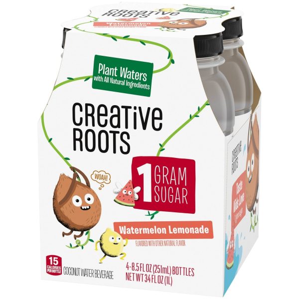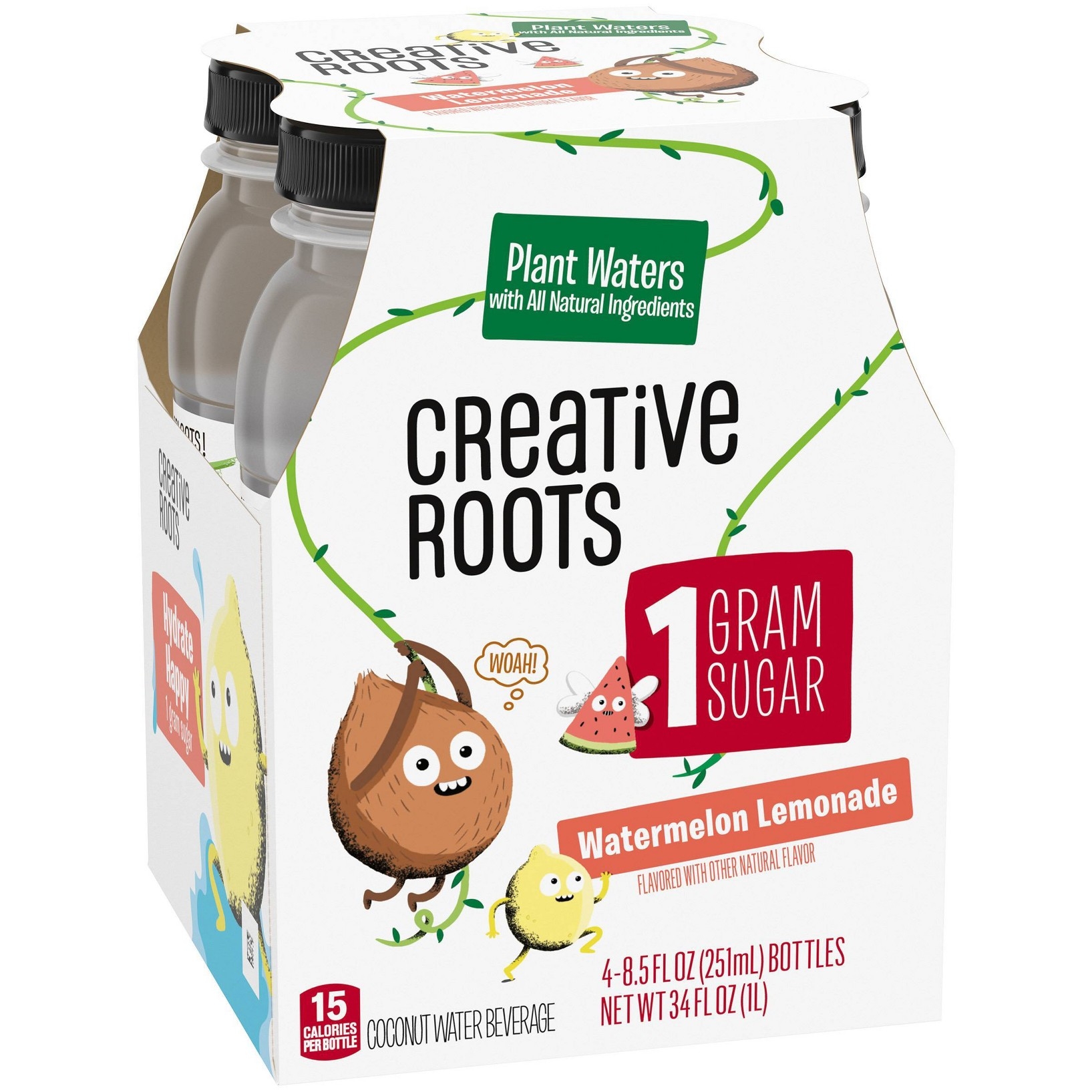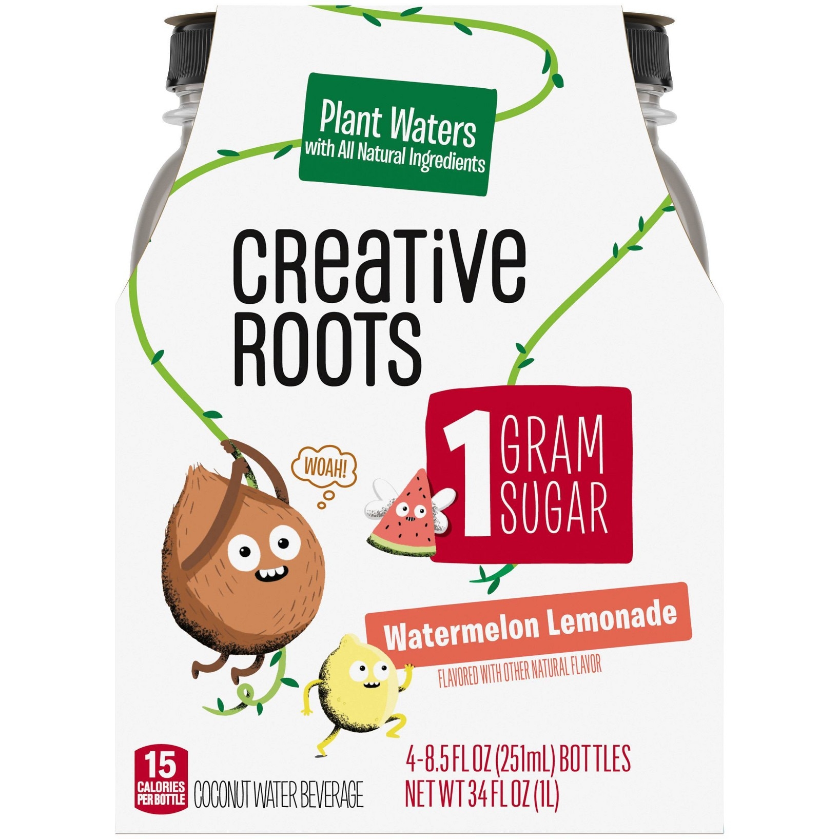 u0026bull;One 4 ct. package of Creative Roots Watermelon Lemonade Flavored Kids Coconut Water Beverage with other natural flavorsu003cbru003eu0026bull;Made with all natural ingredients and 1 g of sugar per serving. The sugar in Creative Roots is naturally occurring sugar from coconut wateru003cbru003eu0026bull;Plant-powered hydration kids needu003cbru003eu0026bull;Flavored coconut water taste kids loveu003cbru003eu0026bull;Each bottle of kids coconut water beverage fits into school lunch bags easilyu003cbru003eu0026bull;Perfect for your child’s lunch or on the go with a snacku003cbru003eu0026bull;This kids coconut water beverage contains 15 calories per serving