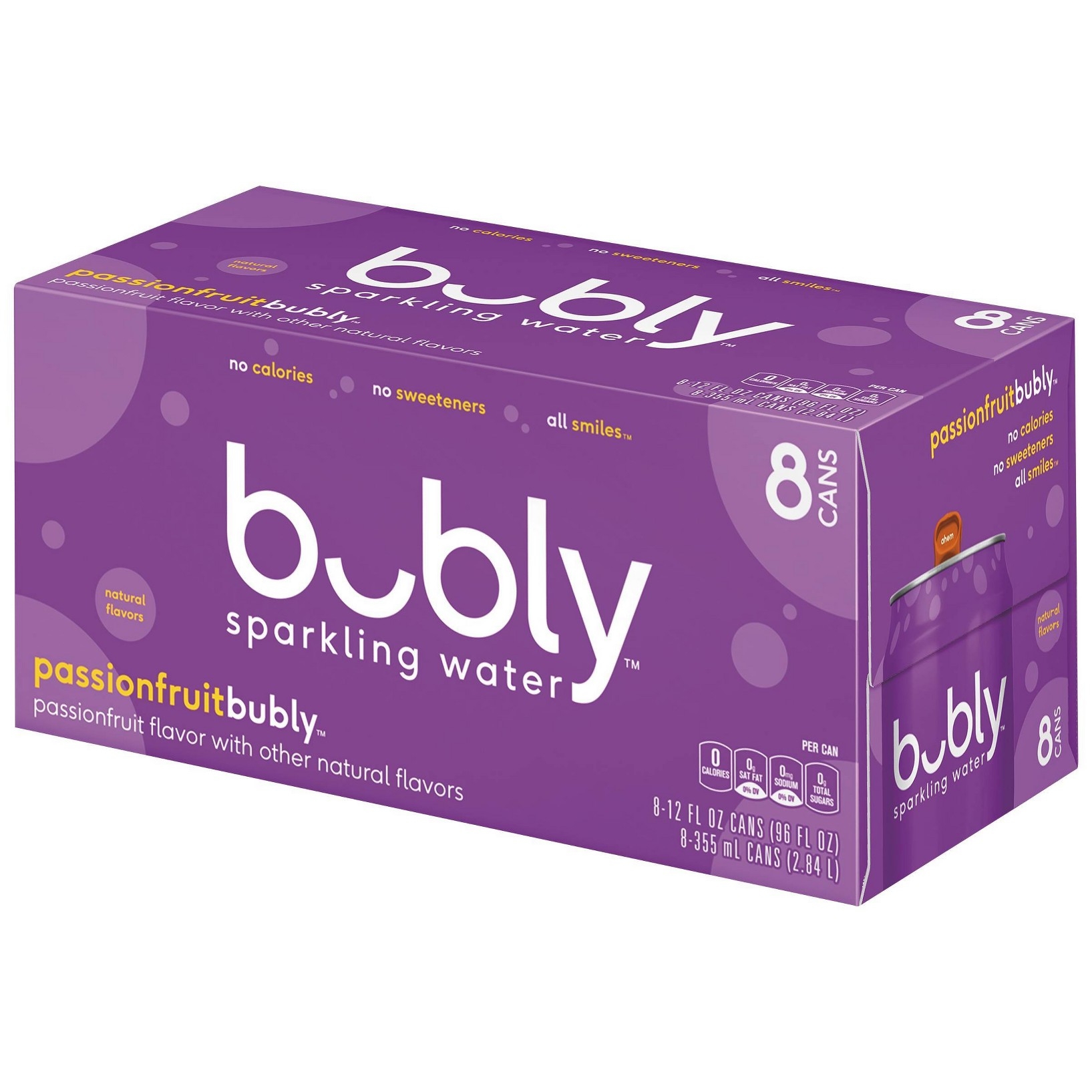 u0026bull;Includes 8 (12oz) cans of bubly sparkling water, Passionfruit flavoru003cbru003eu0026bull;No Calories. No Sweeteners. All Smiles.u003cbru003eu0026bull;Refreshing, crisp sparkling water with great tasting natural flavor