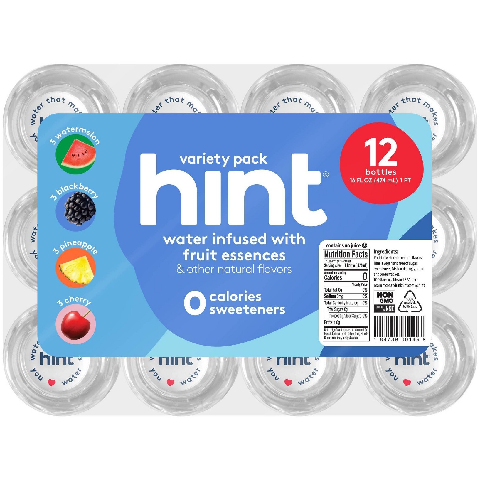 hint Blue Variety Pack Flavored Water – Watermelon, Blackberry, Pineapple, and Cherry – 12pk/16 fl oz Bottles
