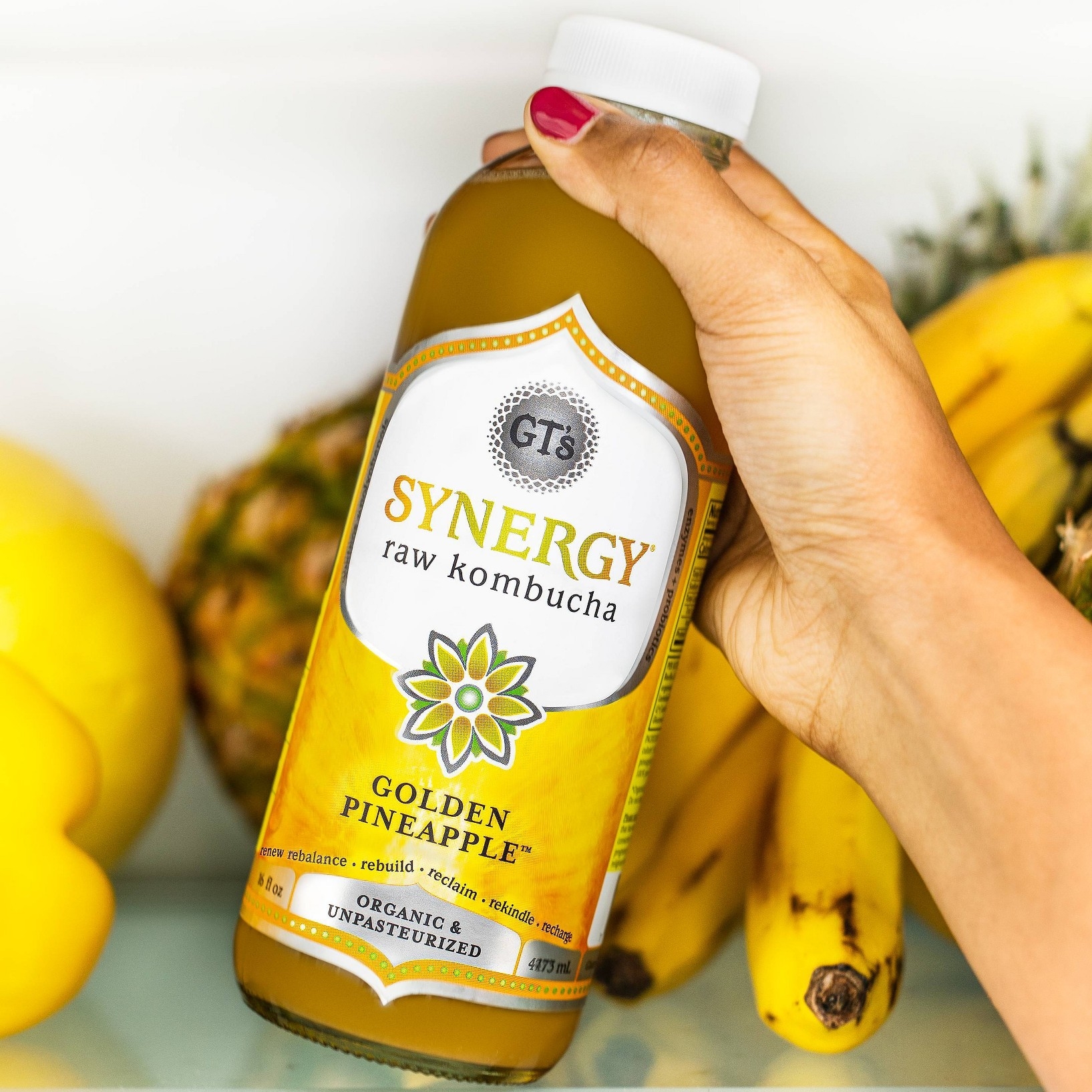 GTu002639s Synergy Organic Golden Pineapple Raw Kombucha – 16 fl oz