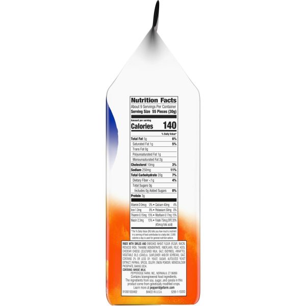 u0026bull;BAKED WITH REAL CHEESE: Our Goldfish Cheddar snack crackers are a crunchable snack-time favorite, always baked with 100% real cheeseu003cbru003eu0026bull;A SNACK EVERYONE CAN FEEL GOOD ABOUT: This irresistible little snack is made with not artificial flavors or preservativesu003cbru003eu0026bull;ALWAYS BAKED, NEVER FRIED: Keep crunchable Goldfish crackers around for a great anytime snacku003cbru003eu0026bull;PERFECT FOR SHARING OR FOR ENJOYING SOLO: The great taste of Goldfish Cheddar snack crackers is perfect for hanging out with friends, or taking a snack break any time the mood hitsu003cbru003eu0026bull;ADD EXCITEMENT TO YOUR MEALS: Add Goldfish Cheddar crackers to soups, sprinkle them on salads, or simply serve as a side to your lunchtime sandwich