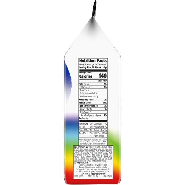 u0026bull;COLORFUL CHEESY GOLDFISH: Playful cheese crackers in a rainbow of colors, baked with a smileu003cbru003eu0026bull;BAKED WITH REAL CHEESE: Always made with 100% real cheddar cheese and no artificial flavors or preservativesu003cbru003eu0026bull;COLORS SOURCED FROM PLANTS: Pepperidge Farm uses colors sourced from plants — like red beet juice concentrate — to make Goldfish Colors colorfulu003cbru003eu0026bull;ADD EXCITEMENT TO YOUR MEALS: Add Goldfish crackers to soups, sprinkle them on salads, or simply serve as a side to your lunchtime sandwichu003cbru003eu0026bull;GO FOR THE HANDFUL: The 10 ounce bag is perfect for sharing during movie nights and gametime, or simply pour yourself a bowl for a satisfying on-the-go snack