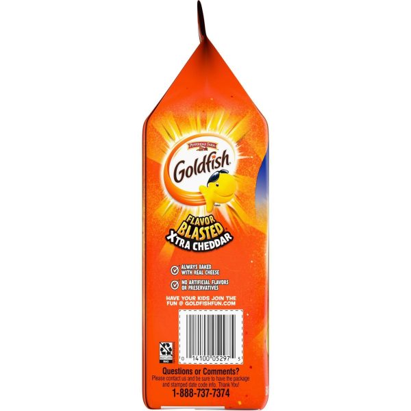 u0026bull;INTENSE FLAVOR: Flavor Blasted Xtra Cheddar Goldfish crackers are a snack-time favorite, baked with big, bold flavoru003cbru003eu0026bull;A SNACK EVERYONE CAN FEEL GOOD ABOUT: This irresistible little snack is always made with no artificial flavors or preservativesu003cbru003eu0026bull;ALWAYS BAKED, NEVER FRIED: Keep munchable, crunchable Goldfish crackers around for an anytime snack for the whole familyu003cbru003eu0026bull;PERFECT FOR SHARING OR FOR ENJOYING SOLO: The intense flavor of Goldfish Flavor Blasted crackers is perfect for hanging out with friends, or taking a snack break any time the mood hitsu003cbru003eu0026bull;ADD EXTRA FLAVOR TO YOUR MEALS: Add Goldfish Flavor Blasted crackers to soups, sprinkle them on salads, or simply serve as a side to your lunchtime sandwich