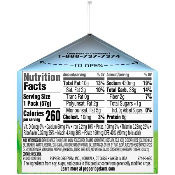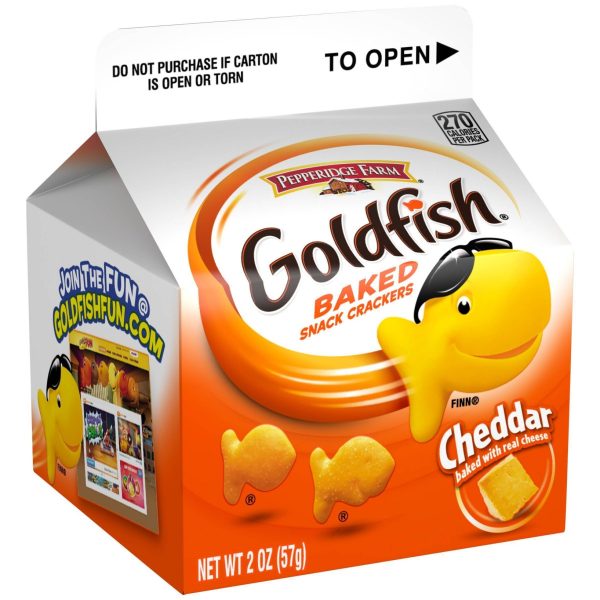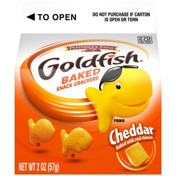 u0026bull;BAKED WITH REAL CHEESE: Our Goldfish Cheddar snack crackers are a crunchable, munchable snack-time favorite, always baked with 100% real Cheddar cheeseu003cbru003eu0026bull;A SNACK EVERYONE CAN FEEL GOOD ABOUT: This irresistible little snack is always made with no artificial flavors or preservativesu003cbru003eu0026bull;ALWAYS BAKED, NEVER FRIED: Keep munchable, crunchable Goldfish crackers around for a great anytime snacku003cbru003eu0026bull;ADD EXCITEMENT TO YOUR MEALS: Add Goldfish Cheddar crackers to soups, sprinkle them on salads, or simply serve as a side to your lunchtime sandwichu003cbru003eu0026bull;GO FOR THE HANDFUL: The 2-oz. carton makes a satisfying, on-the-go snack