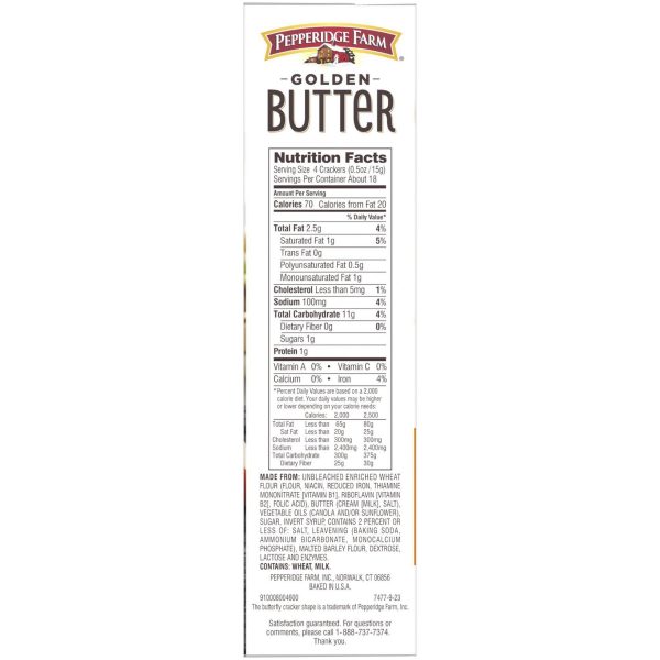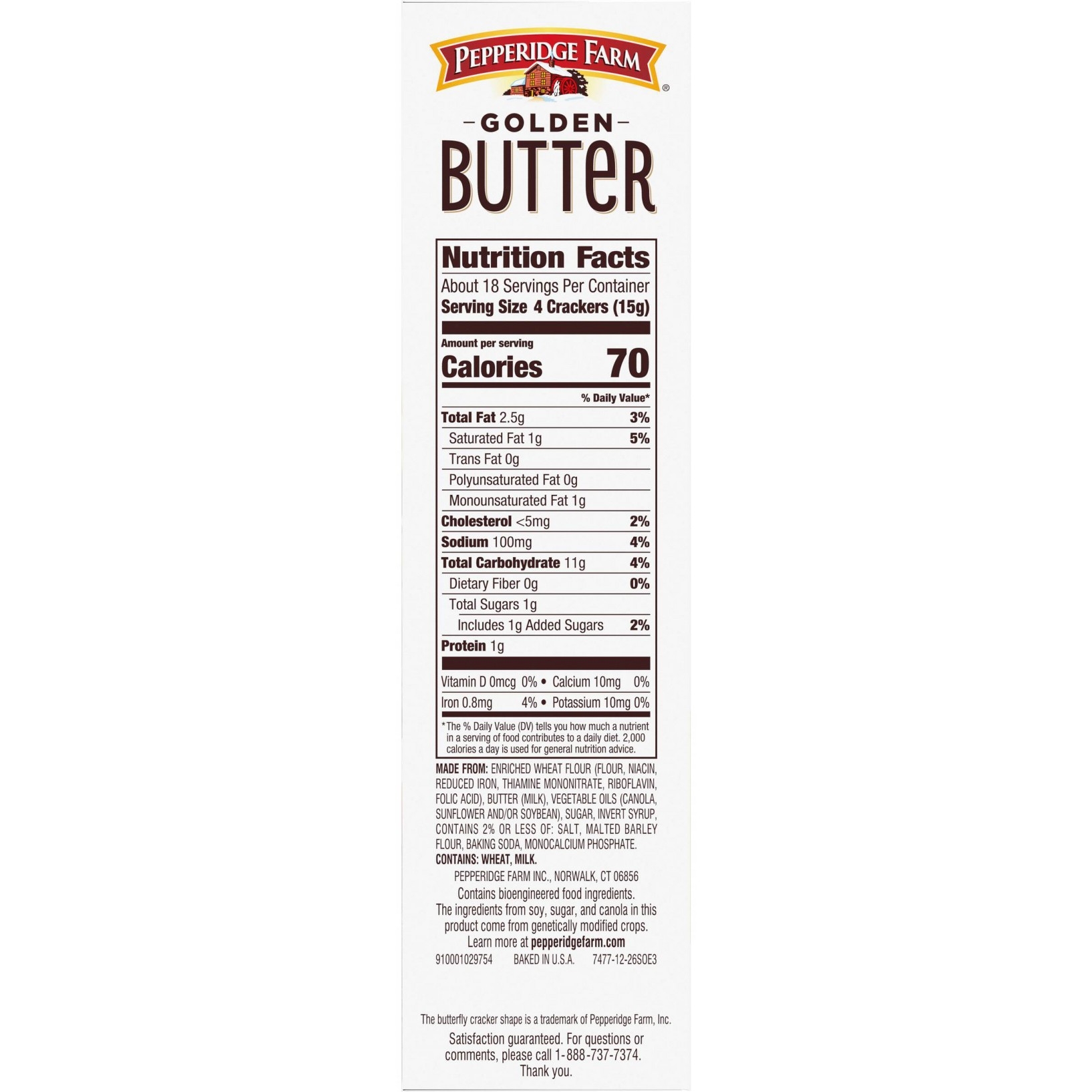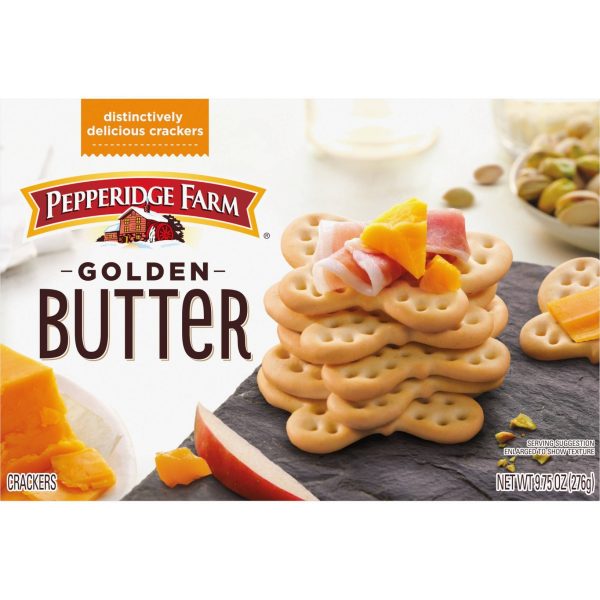 u0026bull;Rich golden butter crackersu003cbru003eu0026bull;Perfect to pair with sharp cheddar cheese and ham, creamy mozzarella and salami, or any of your favorite toppingsu003cbru003eu0026bull;9.75 oz. boxu003cbru003eu0026bull;Entertaining is easy with Pepperidge Farm crackers!u003cbru003eu0026bull;Baked with care