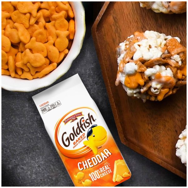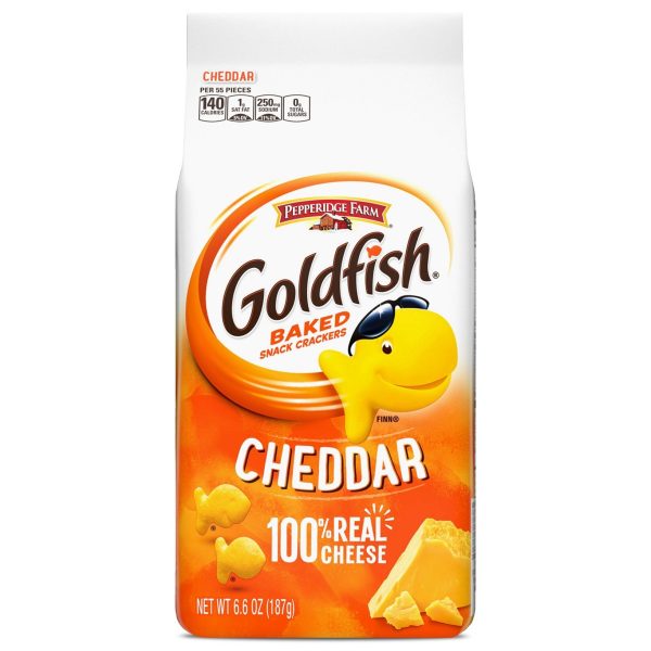 u0026bull;BAKED WITH REAL CHEESE: Our Goldfish Cheddar snack crackers are a crunchable snack-time favorite, always baked with 100% real cheese.u003cbru003eu0026bull;A SNACK EVERYONE CAN FEEL GOOD ABOUT: This irresistible little snack is made with not artificial flavors or preservatives.u003cbru003eu0026bull;ALWAYS BAKED, NEVER FRIED: Keep crunchable Goldfish crackers around for a great anytime snack.u003cbru003eu0026bull;PERFECT FOR SHARING OR FOR ENJOYING SOLO: The great taste of Goldfish Cheddar snack crackers is perfect for hanging out with friends, or taking a snack break any time the mood hits.u003cbru003eu0026bull;ADD EXCITEMENT TO YOUR MEALS: Add Goldfish Cheddar crackers to soups, sprinkle them on salads, or simply serve as a side to your lunchtime sandwich.