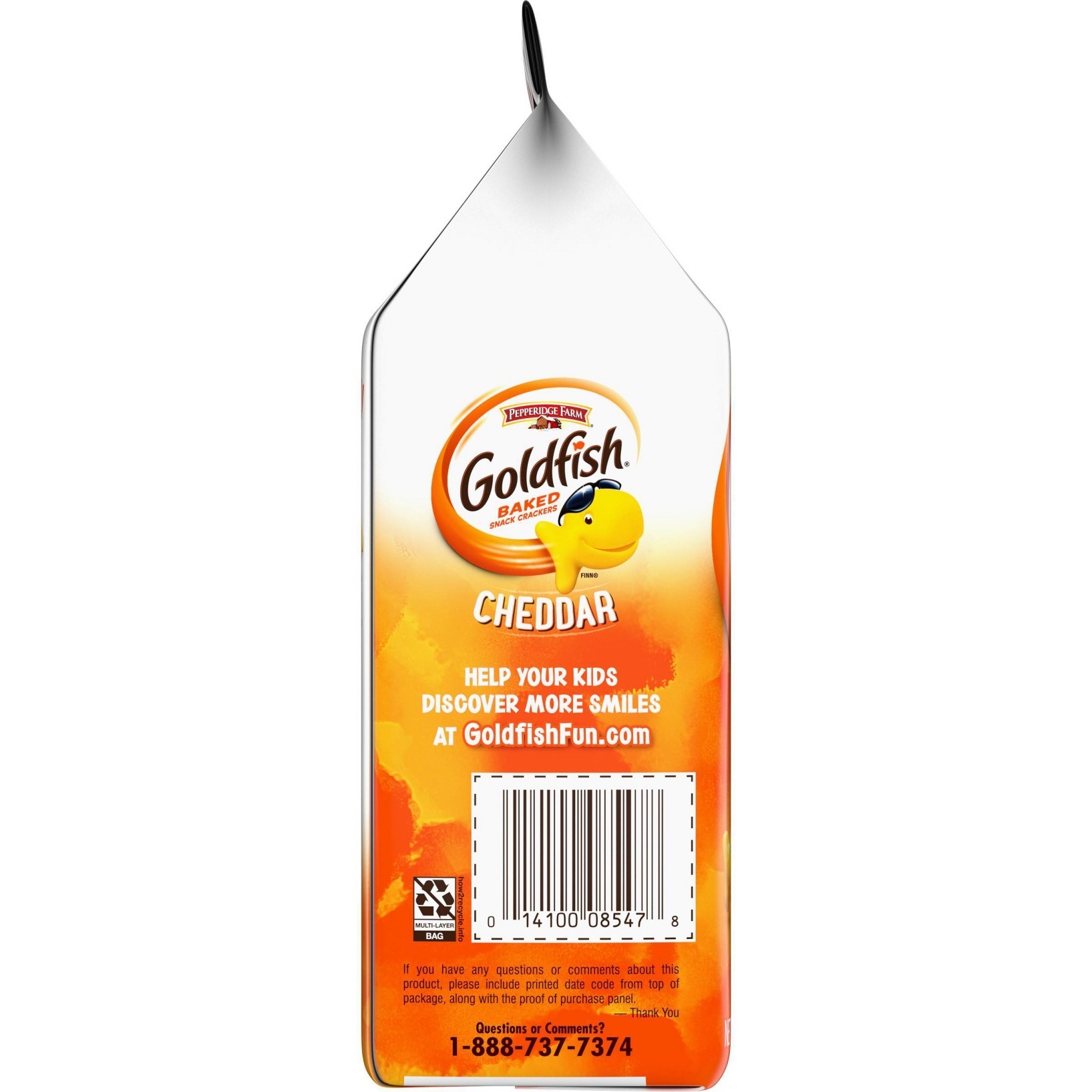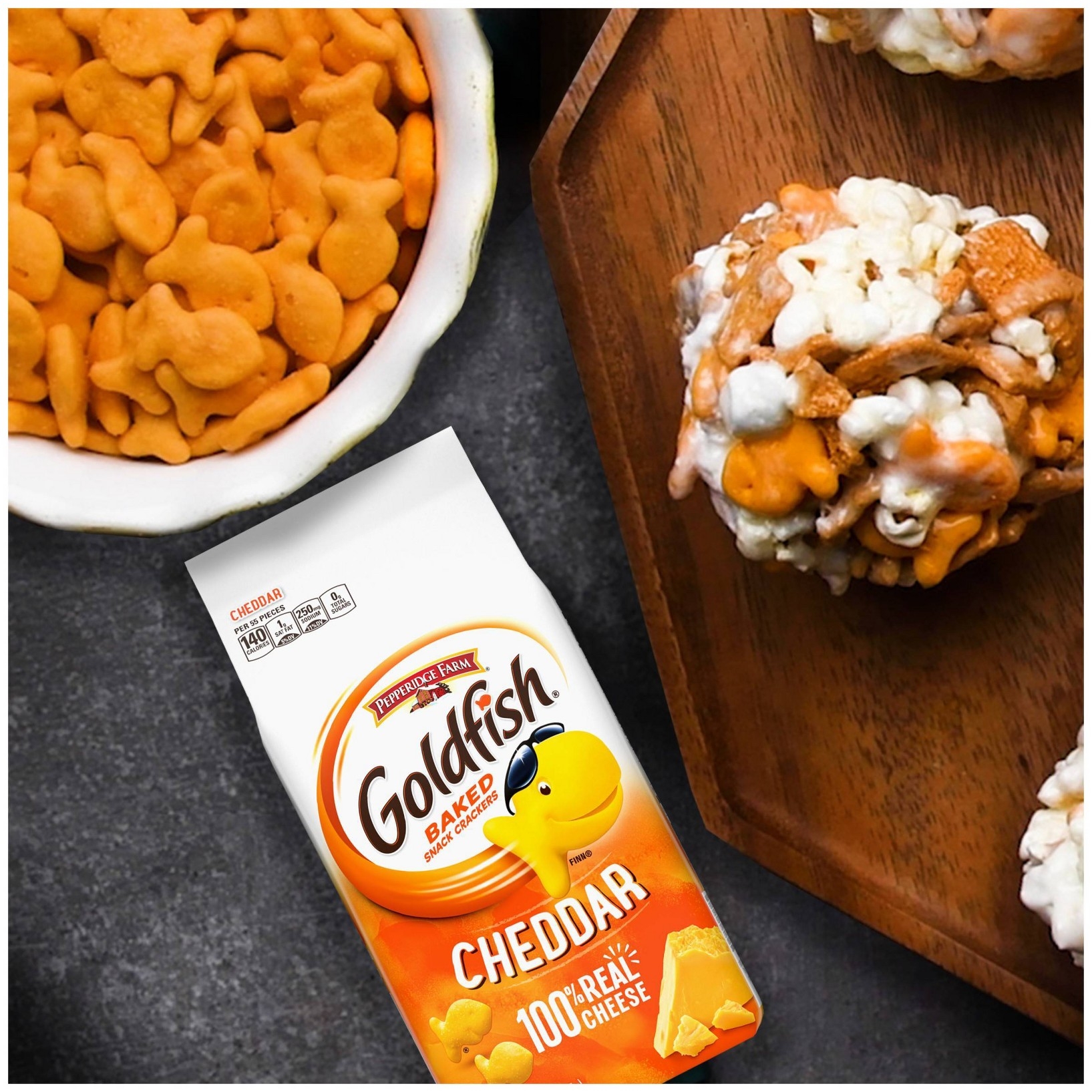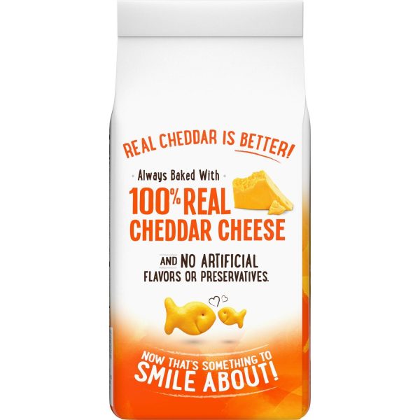 u0026bull;BAKED WITH REAL CHEESE: Our Goldfish Cheddar snack crackers are a crunchable, munchable snack-time favorite, always baked with 100% real cheese.u003cbru003eu0026bull;A SNACK EVERYONE CAN FEEL GOOD ABOUT: This irresistible little snack is always made with no artificial flavors or preservatives.u003cbru003eu0026bull;ALWAYS BAKED, NEVER FRIED: Keep munchable, crunchable Goldfish crackers around for an anytime snack that everyone can feel good about.u003cbru003eu0026bull;PERFECT FOR SHARING OR FOR ENJOYING SOLO: The great taste of Goldfish crackers is perfect for hanging out with friends, or taking a snack break any time the mood hits.u003cbru003eu0026bull;ADD EXCITEMENT TO YOUR MEALS: Add Goldfish Cheddar crackers to soups, sprinkle them on salads, or simply serve as a side to your lunchtime sandwich.