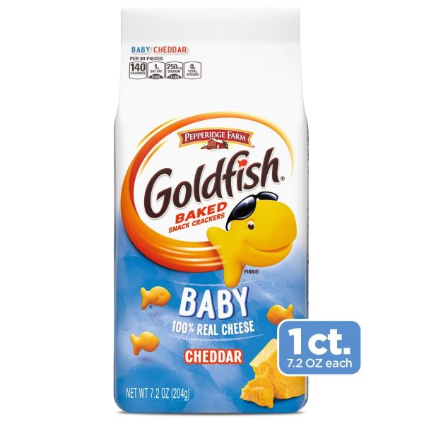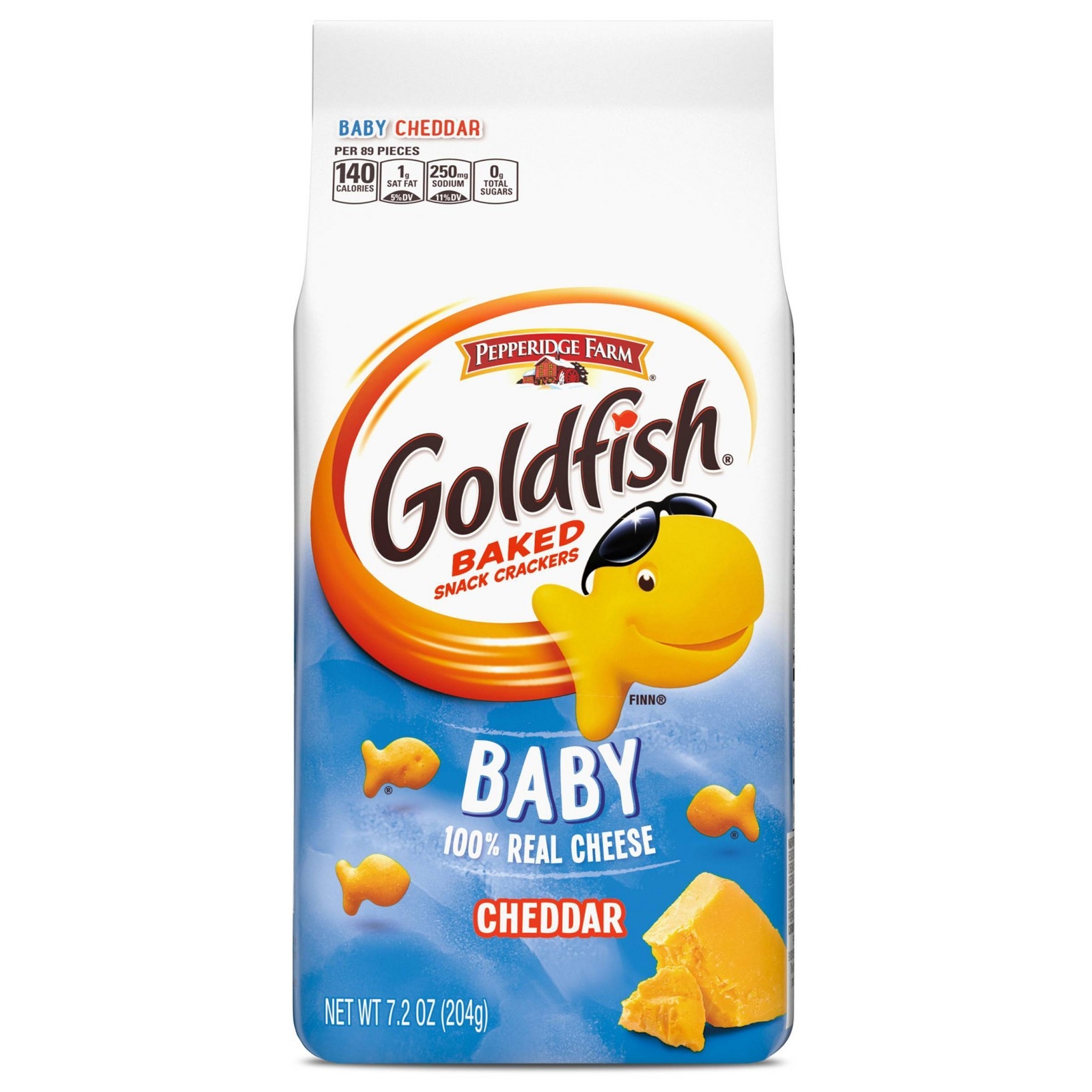 u0026bull;BAKED WITH REAL CHEESE: Our Goldfish Baby Cheddar snack crackers are a crunchable, munchable snack-time favorite, in miniature.u003cbru003eu0026bull;A SNACK EVERYONE CAN FEEL GOOD ABOUT: Always baked with 100% real Cheddar cheese and made with no artificial flavors or preservatives.u003cbru003eu0026bull;ALWAYS BAKED, NEVER FRIED: Keep munchable, crunchable Goldfish Baby Cheddar crackers around for a great anytime snack.u003cbru003eu0026bull;PERFECT FOR SHARING OR FOR ENJOYING SOLO: The great taste of Goldfish crackers is perfect for hanging out with friends, or taking a snack break any time the mood hits.u003cbru003eu0026bull;ADD EXCITEMENT TO YOUR MEALS: Add Goldfish Baby crackers to soups, sprinkle them on salads, or simply serve as a side to your lunchtime sandwich.