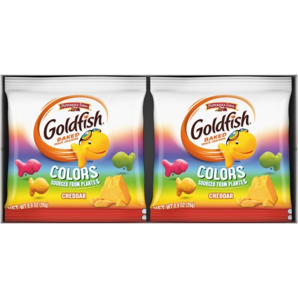 u0026bull;BAKED WITH REAL CHEESE: Our Goldfish Colors Cheddar snack crackers are a crunchable, munchable snack-time favorite, always baked with 100% real Cheddar cheeseu003cbru003eu0026bull;A SNACK EVERYONE CAN FEEL GOOD ABOUT: This irresistible little snack is made with colors sourced from plantsu003cbru003eu0026bull;ALWAYS BAKED, NEVER FRIED: Keep munchable, crunchable Goldfish crackers around for a great anytime snacku003cbru003eu0026bull;PERFECT FOR SHARING OR ENJOYING SOLO: Everyone loves the yummy taste of Goldfish Colors Cheddar crackers, so they’re perfect for hanging out with friends or enjoying on your ownu003cbru003eu0026bull;ADD EXCITEMENT TO YOUR MEALS: Add Goldfish Colors Cheddar crackers to soups, sprinkle them on salads, or simply serve as a side to your lunchtime sandwich