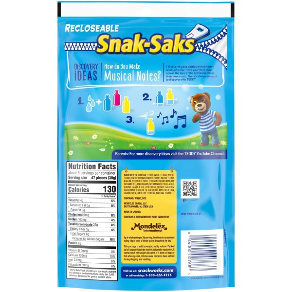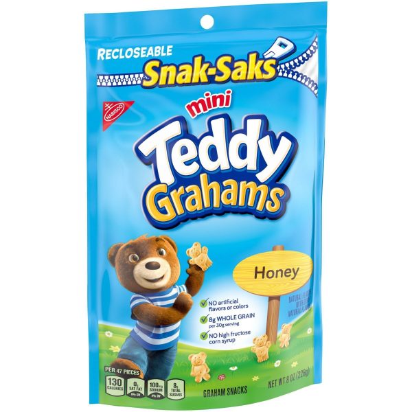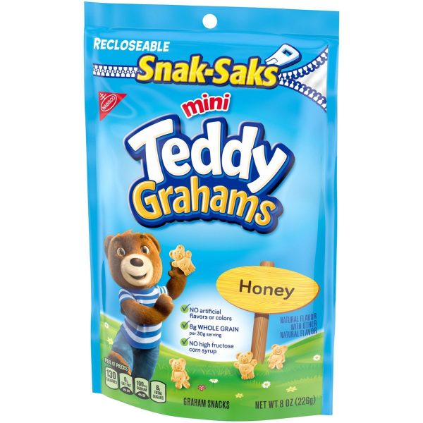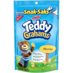 u0026bull;These playful bear-shaped cookies are great tasting and fun to eat.u003cbru003eu0026bull;Teddy Grahams are a wholesome snack for the whole family.u003cbru003eu0026bull;Teddy Graham crackers are made with 8 to 10 grams of whole grain per 25 to 31 gram serving.u003cbru003eu0026bull;Kids and adults alike will enjoy the delicious Honey flavor.u003cbru003eu0026bull;This includes one 8oz resealable bag of Teddy Grahams Mini Crackers Snak Saks.