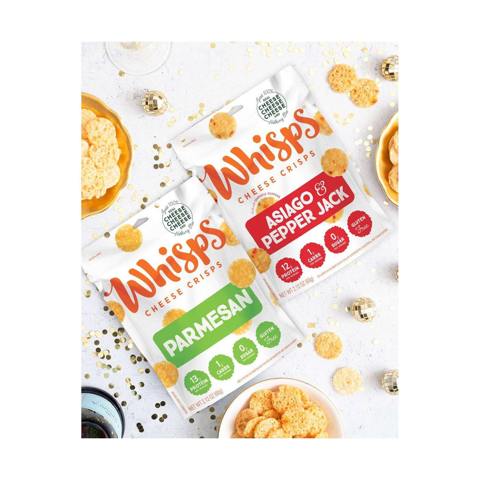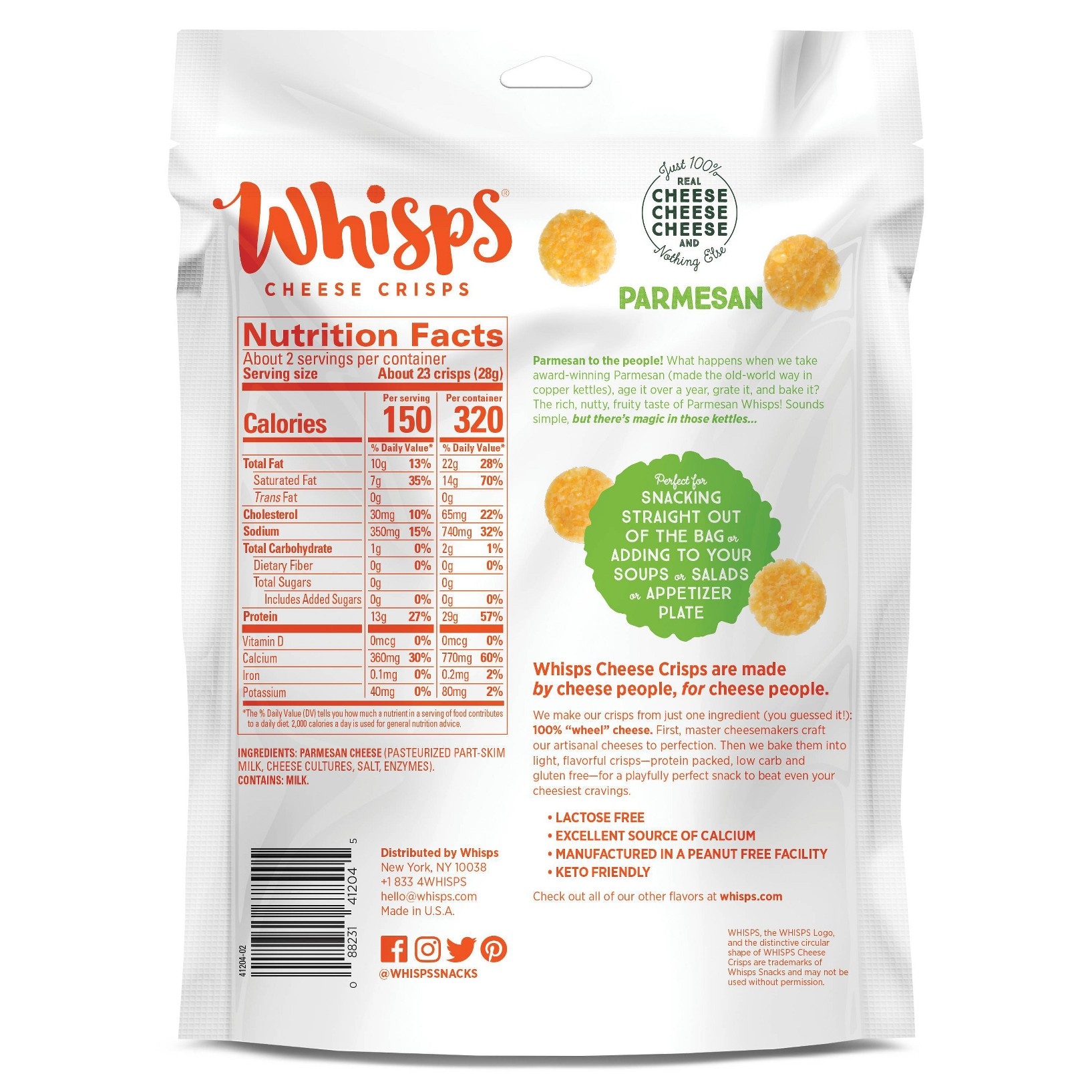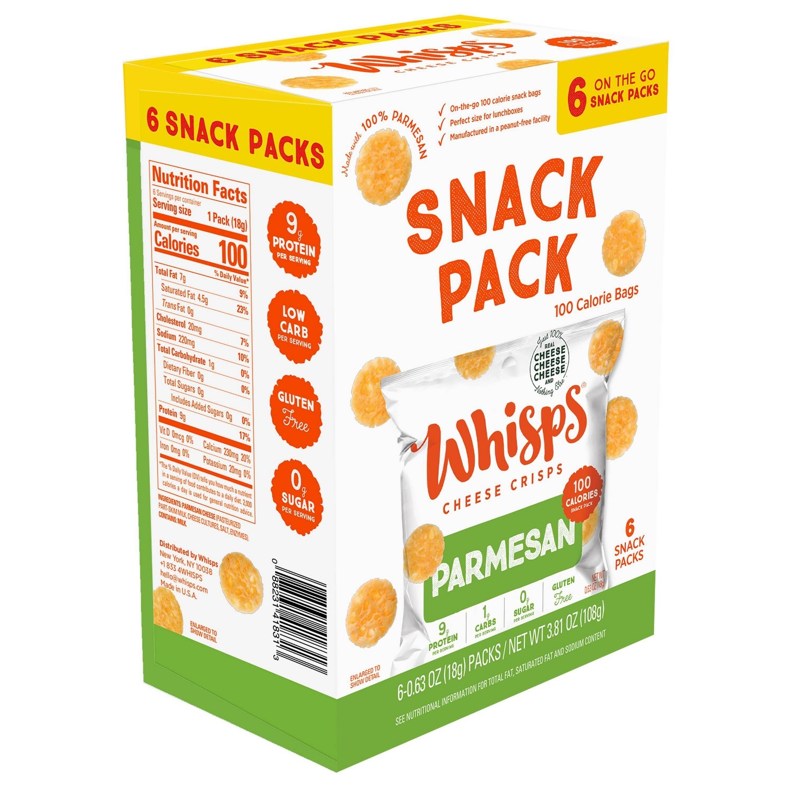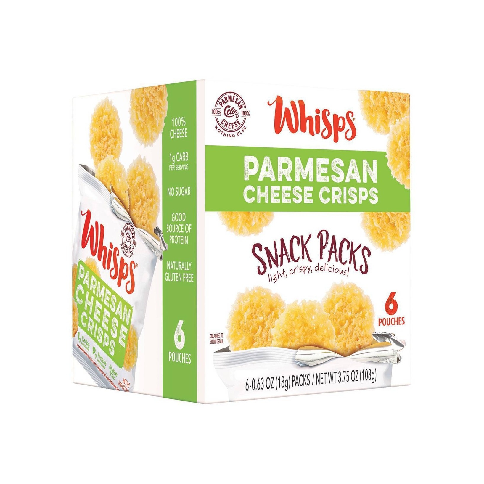 u0026bull;Whisps 6-count snack bagsu003cbru003eu0026bull;100% Parmesan Cheese – the only artisanal copper kettle parmesan in the USu003cbru003eu0026bull;9g Protein, 1g Carbs, 0g Sugar per Servingu003cbru003eu0026bull;High Protein, Keto Friendly u0026 Gluten Freeu003cbru003eu0026bull;Perfect for snacking straight out of the bag or adding to your soups or salads or appetizer plate