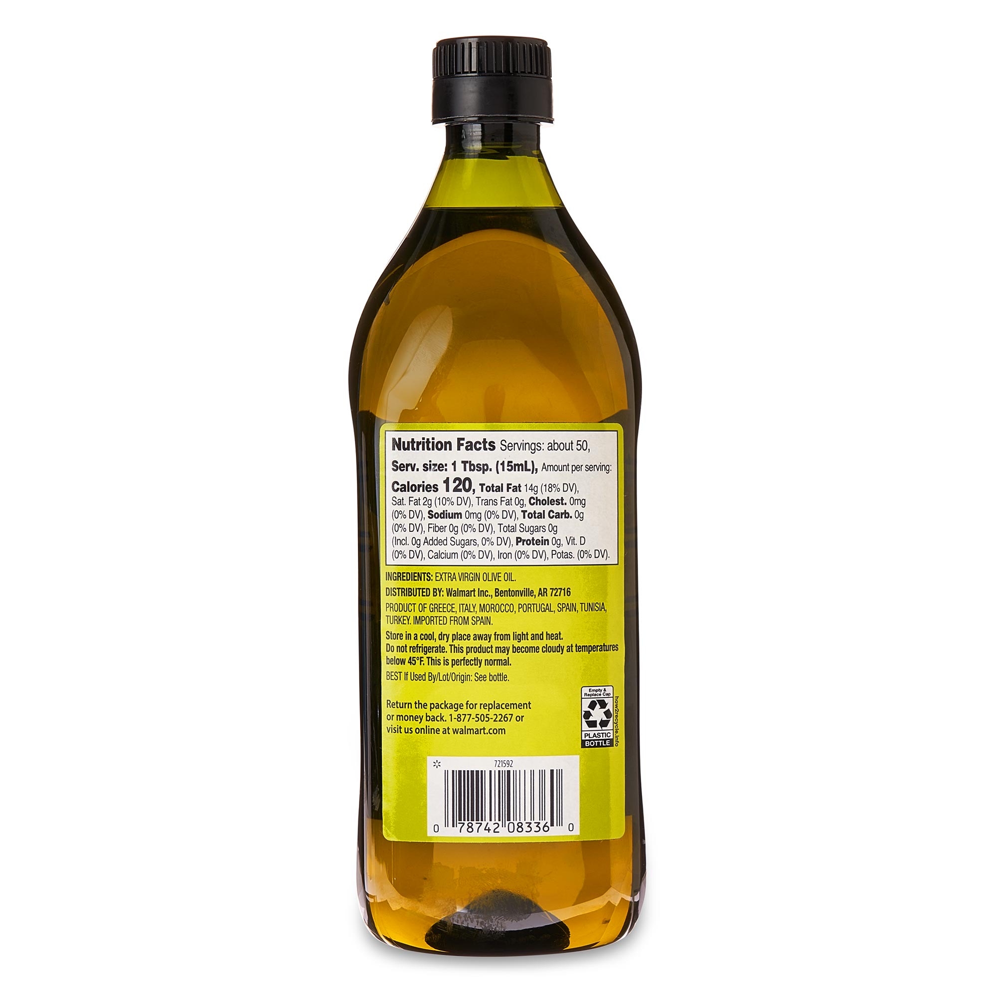 Enhance the flavor of your favorite recipe with Great Value 100% Extra Virgin Olive Oil. Its smooth, mellow taste makes it a great base for salad dressings, a lovely dip for crusty bread, and a cooking staple when it comes to preparing Mediterranean, Greek, and Italian foods. It’s 100-percent pure; the only ingredient is olive oil. As a pareve product, it’s neither meat nor dairy under kosher guidelines, allowing you to put it in dishes containing either type of ingredient. Enjoy the lovely, simplistic taste of Great Value 100% Extra Virgin Olive Oil.