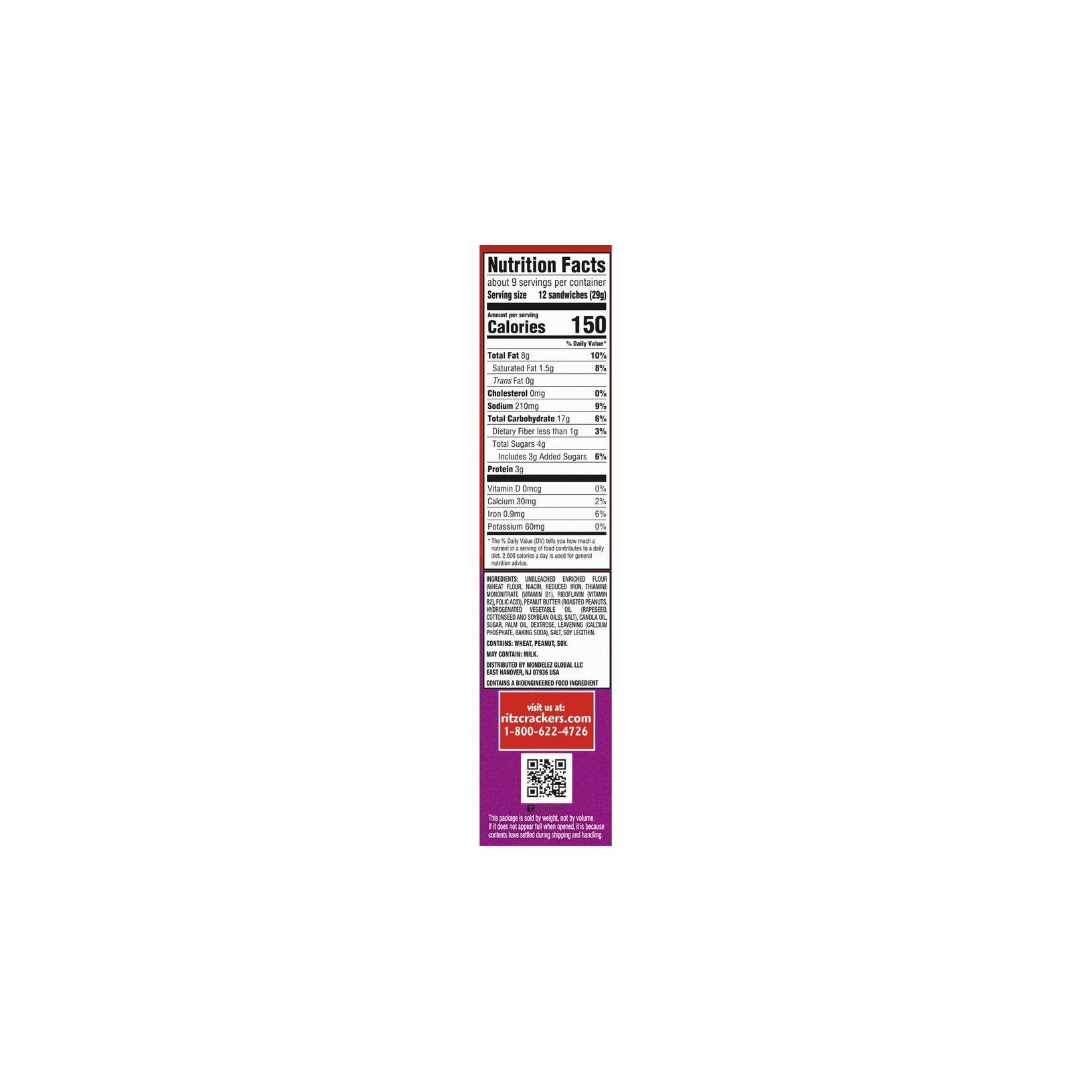 u0026bull;One package of 8 snacks packs of RITZ Peanut Butter Sandwich Crackers (packaging may vary)u003cbru003eu0026bull;Cracker sandwiches feature smooth peanut butter spread between two crisp RITZ crackersu003cbru003eu0026bull;Portable, on the go snacks for home, work or schoolu003cbru003eu0026bull;Easy to pack for convenient snacks for travelingu003cbru003eu0026bull;Sandwich crackers with filling made with real peanut butter