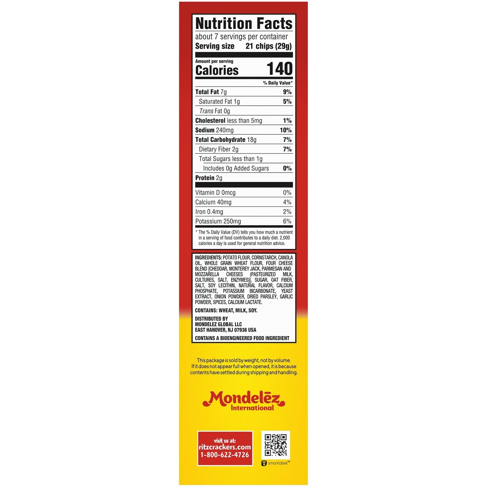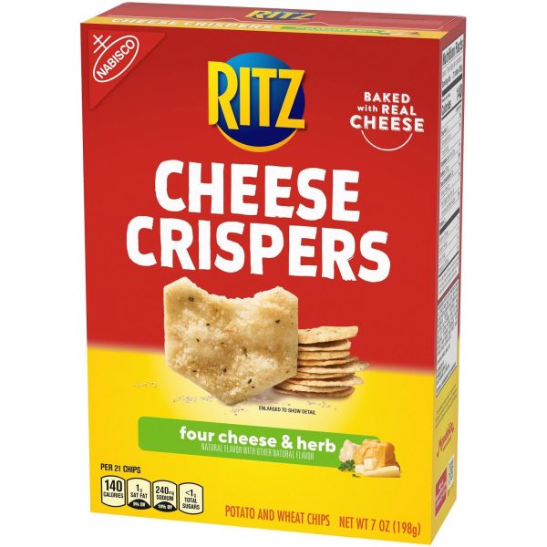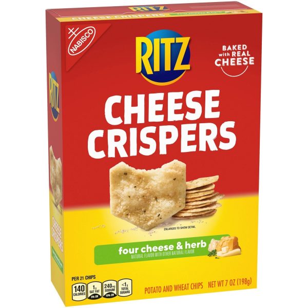 u0026bull;One 7 oz box of RITZ Cheese Crispers Four Cheese and Herb Baked Chips u003cbru003eu0026bull;Herb and cheese cracker chips baked with real cheese and a delightfully crispy texture u003cbru003eu0026bull;These light and airy, bite-sized snack cracker chips are great for any snacking occasion u003cbru003eu0026bull;These oven baked chips are delightfully cheesy and crispy for a satisfying crunch u003cbru003eu0026bull;Grab these delightfully crispy and cheesy potato and wheat chips for your next social occasion