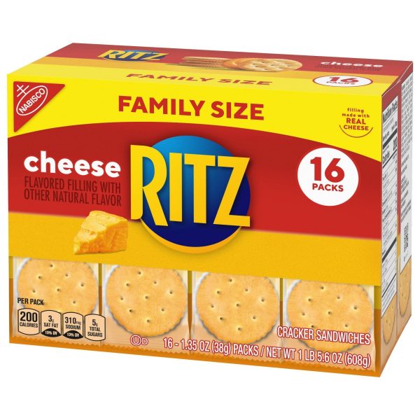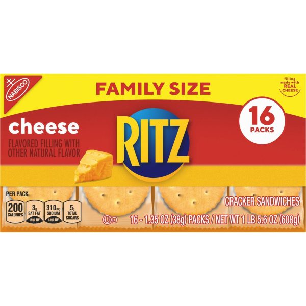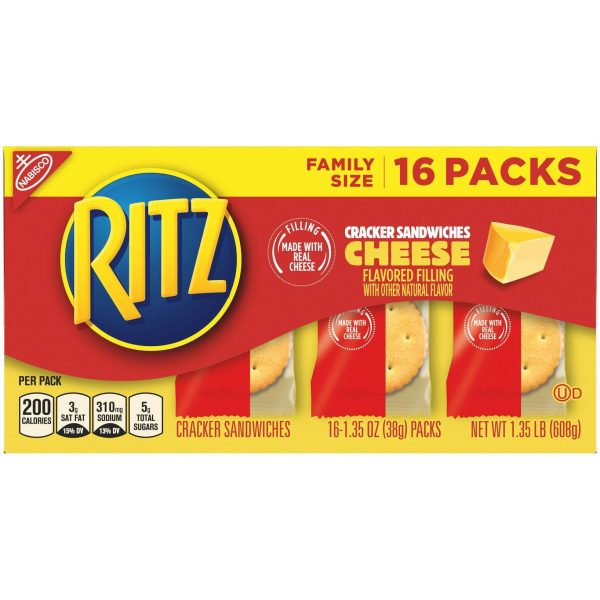 u0026bull;One box of 16 snack packs, each with 6 RITZ Cheese Sandwich Crackersu003cbru003eu0026bull;Cracker packs feature smooth, creamy cheese between two crisp RITZ snack crackersu003cbru003eu0026bull;Portable, go-anywhere snack packs for home, work or schoolu003cbru003eu0026bull;Convenient, packable crackers and cheese snacku003cbru003eu0026bull;Cracker sandwiches have filling made with real cheese
