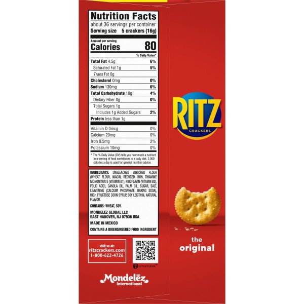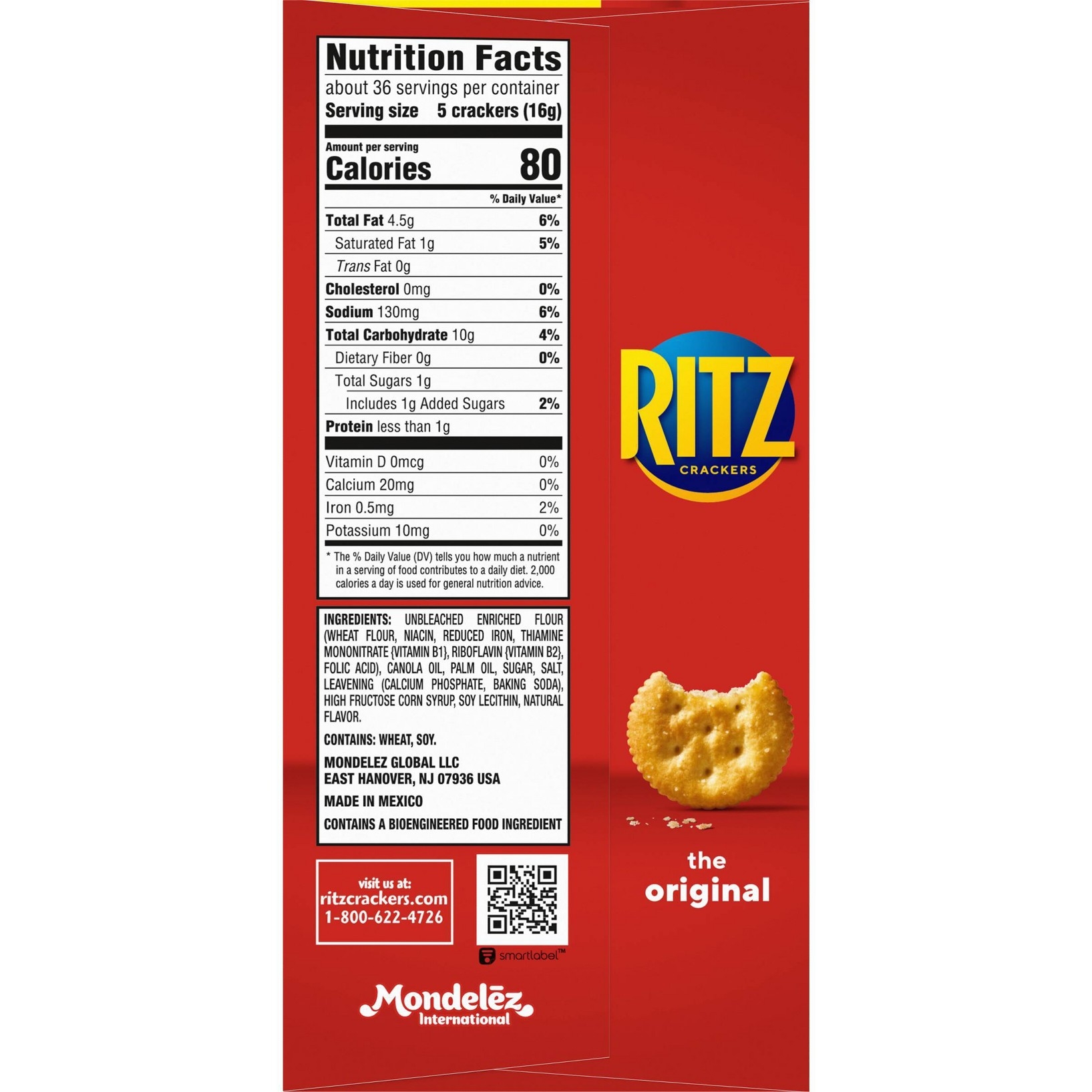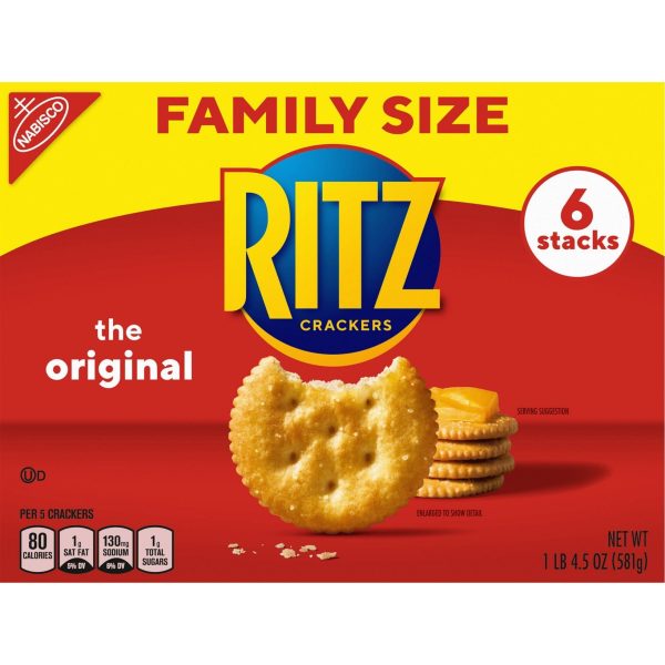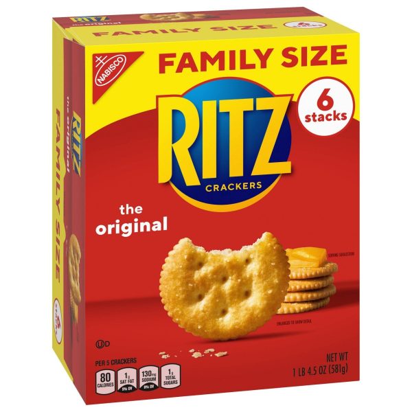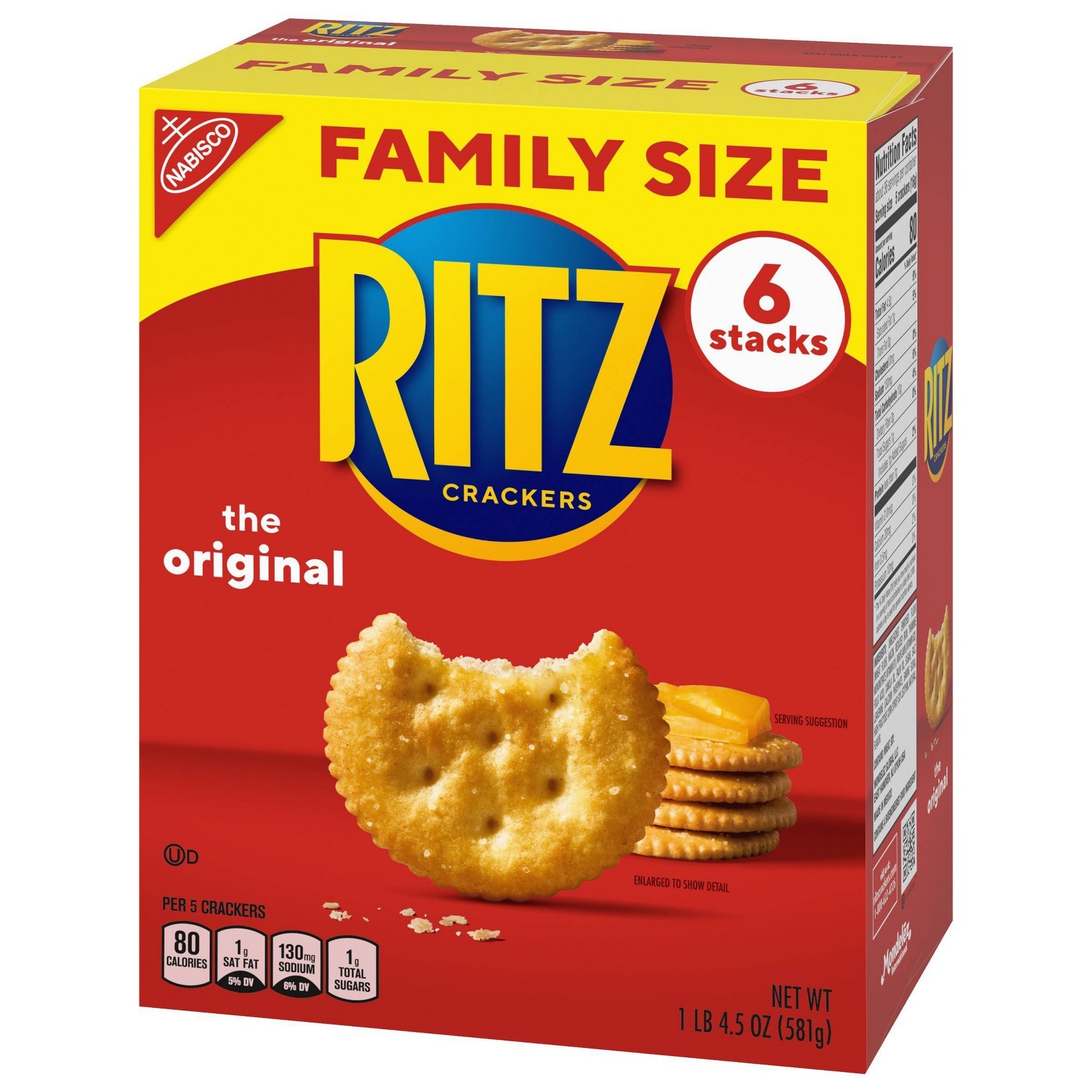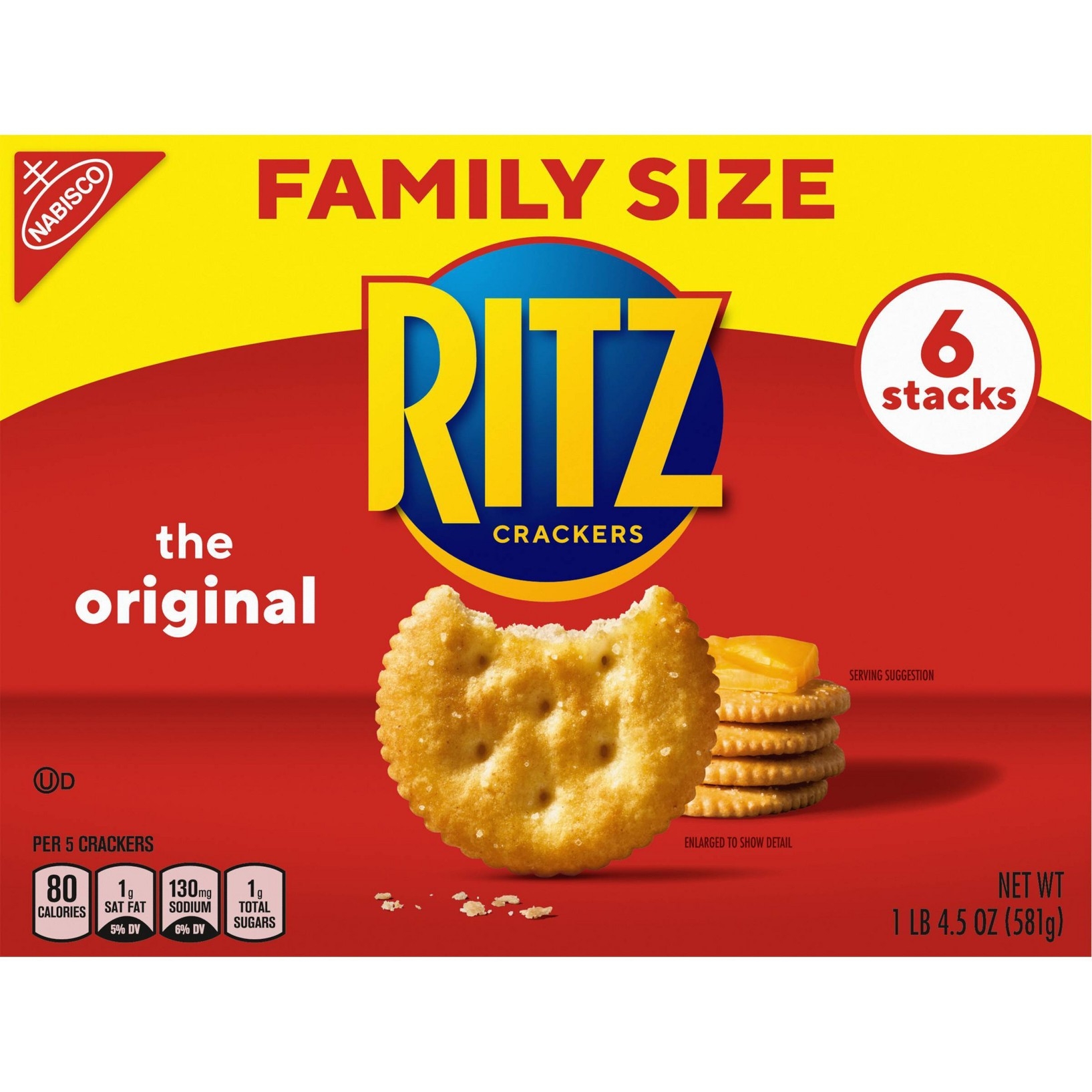 u0026bull;One 20.5 oz family size box with 6 individually wrapped sleeves of RITZ Original Crackers (packaging may vary)u003cbru003eu0026bull;Flaky and delicious RITZ crackers original snack crackers with a rich, buttery flavoru003cbru003eu0026bull;Perfect crackers for snacking, appetizers or quick mealsu003cbru003eu0026bull;Pairs with almost any topping, from meat and cheese to fruit and whipped creamu003cbru003eu0026bull;Individually wrapped sleeves lock in freshness