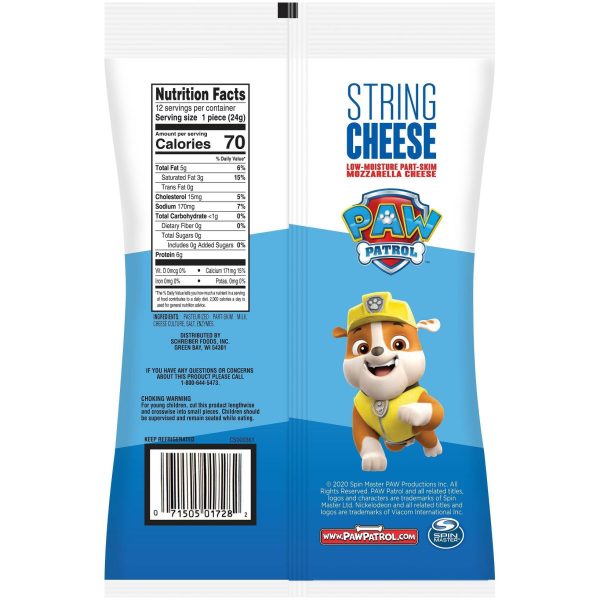 u0026bull;String Cheese, PAW Patrol, Low-Moisture, Mozzarella, Part-Skimu003cbru003eu0026bull;Good source of calcium u0026 protein! www.PawPatrol.com.u003cbru003eu0026bull;Trivia questions on each string cheese piece! u003cbru003eu0026bull;All main characters are featured in each package